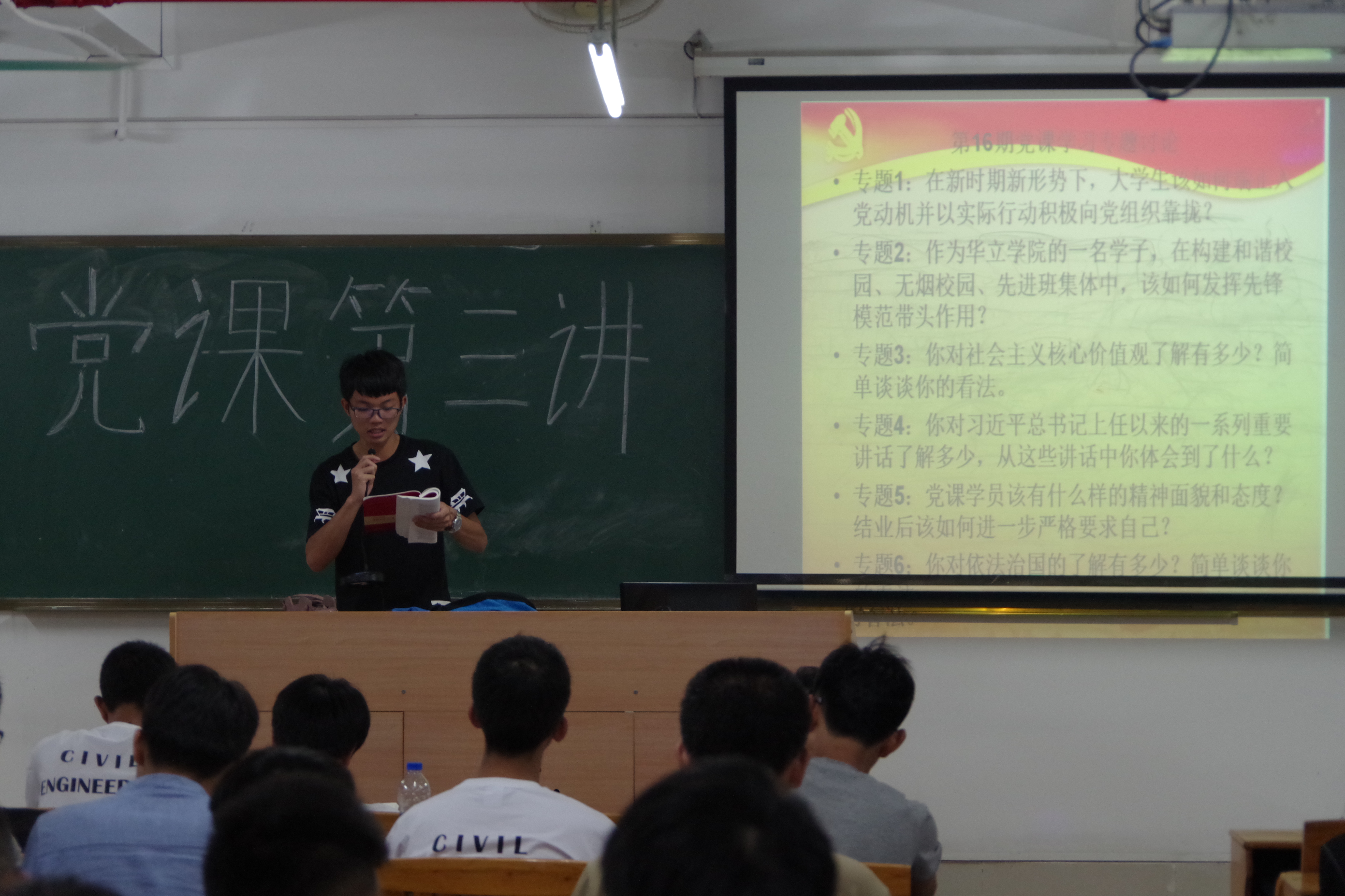 2016年10月31日7点,为了更深入了解党,认识党的性质和宗旨,城建学部党总支在五号教学楼开展了第三讲党课培训。