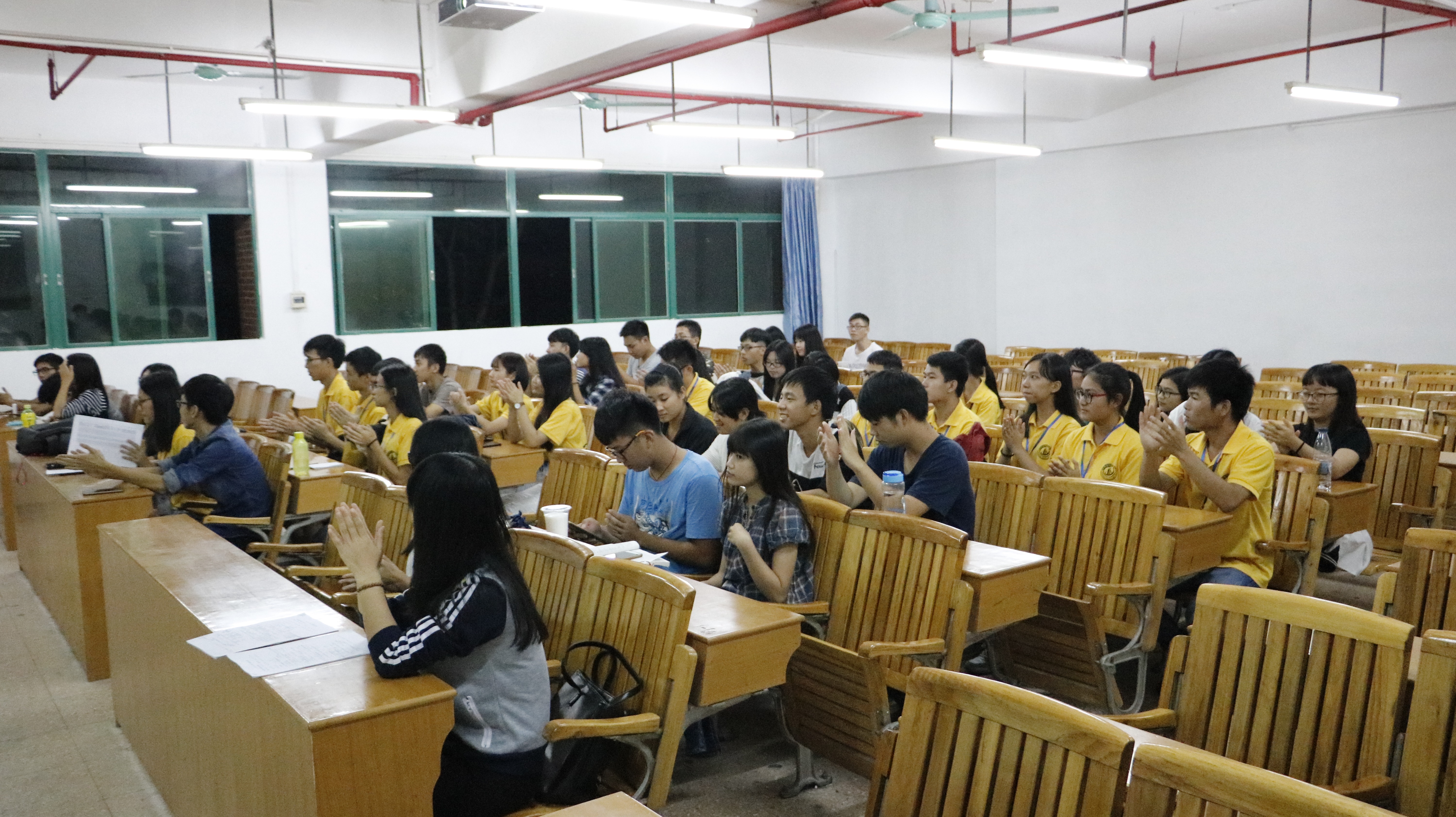 大会接近尾声,我们请来了城建学部学生会副书记黄灿鑫师兄上台发言,希望大家能把这个活动搞好。