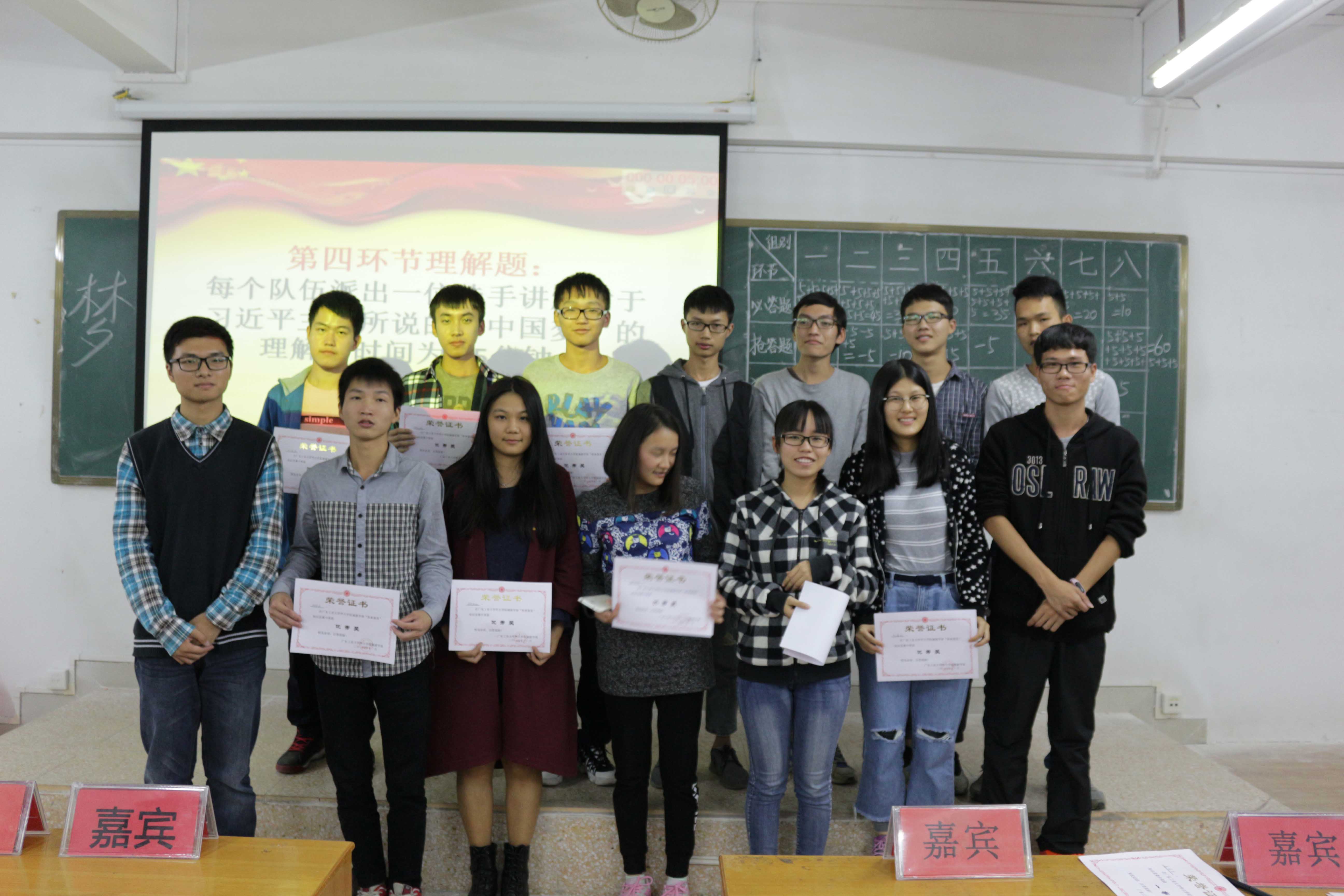 在最后的理解题中,有的组合的分数已经拉开了一定的距离,各组合上台的选手认真、自信的述说着自己对“中国梦”的理解以及它的重要性,他们精彩表现引得台下观众掌声不间断,最终16造价2班成功一战到底,凭借最高分成功取得胜利,在进行了现场颁奖仪式后,比赛在热烈掌声中落下帷幕落幕。