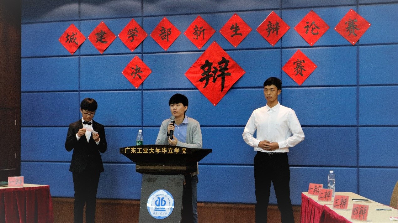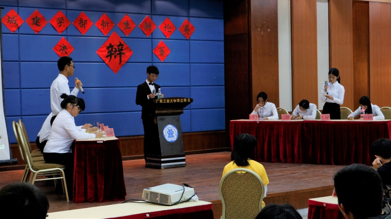 城建学部学习部于2016年11月30日在图书馆4号报告厅举行广东工业大学华立学院第十二届新生辩论赛决赛。决赛的队伍是16造价2班和土木2班。受邀的嘉宾和评委准时到场,主持人介绍各位到场的嘉宾和评委。
