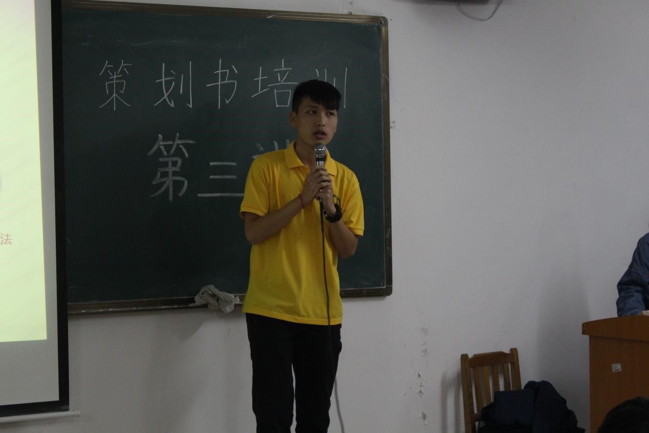 此次的活动先由秘书处的秘书长黄国锐师兄进行演讲,告诉在场的各个部门干事策划书的重要性,同时也在调动全场听讲干事的积极性,让在座的各个部门的干事活跃起来。