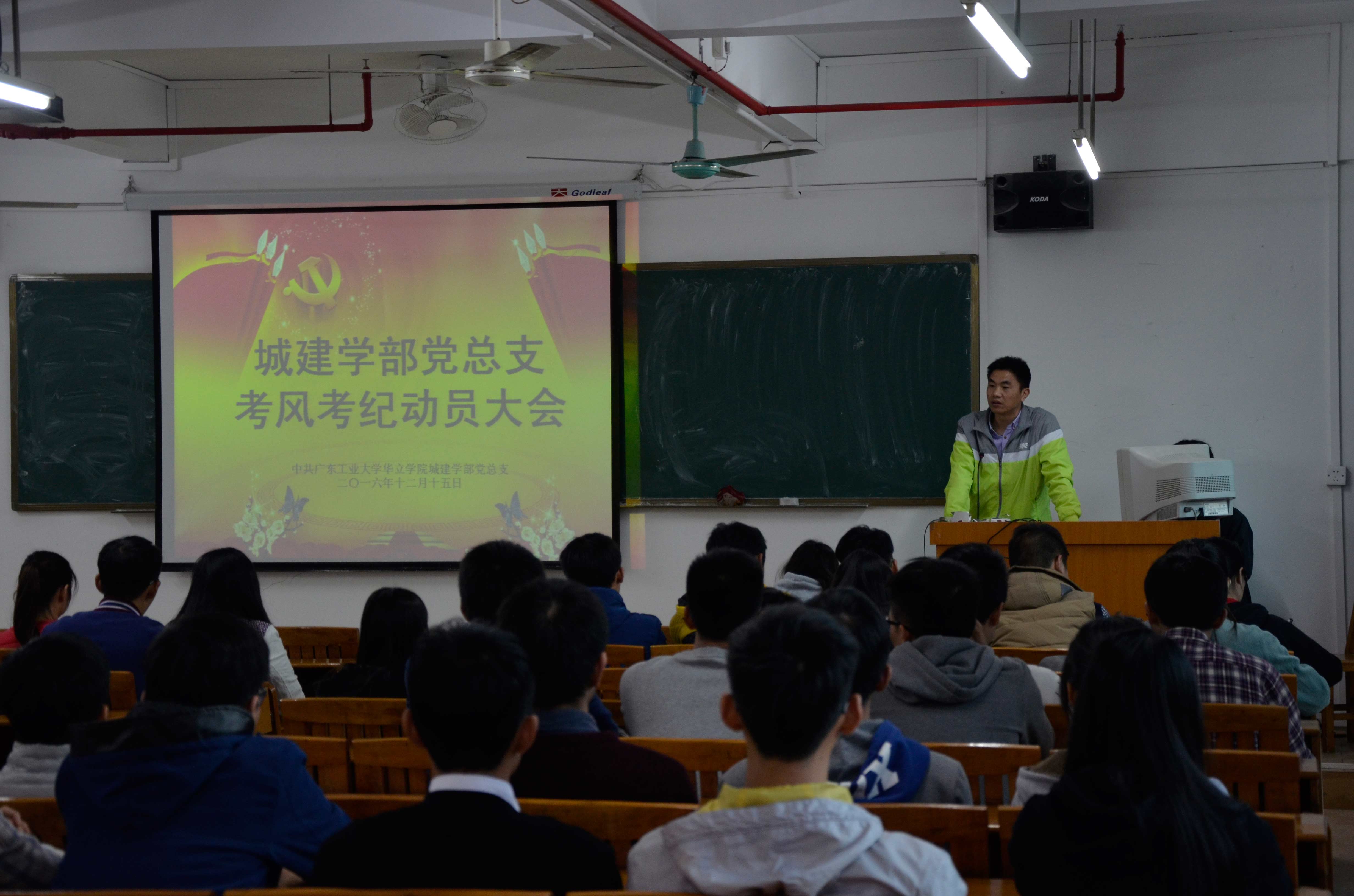 为端正考风考纪,创建公平公正的考试环境,12月15日,城建学部党总支于第五教学楼201举行考风考纪动员大会。党总支书记蔡凯武,党建指导老师、土木工程党支部书记郭花,纪律委员郭彩霞,工程管理党支部书记佘跃枫,学生第一党支部书记曾珊珊出席此次会议。