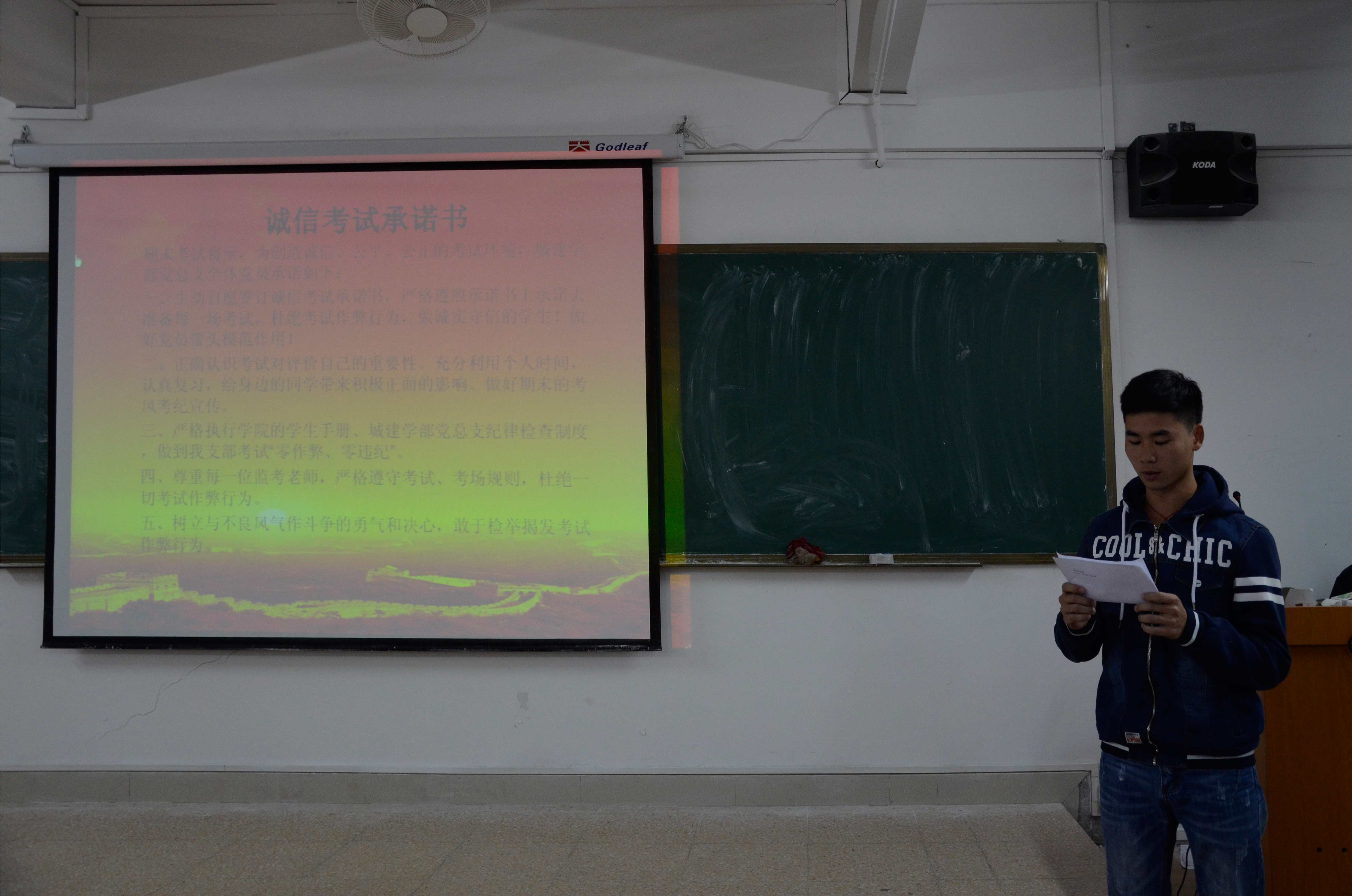 随后,在学生副书记李国盛的带领下,全体党员宣读诚信考试承诺书,并于承诺书上签字。