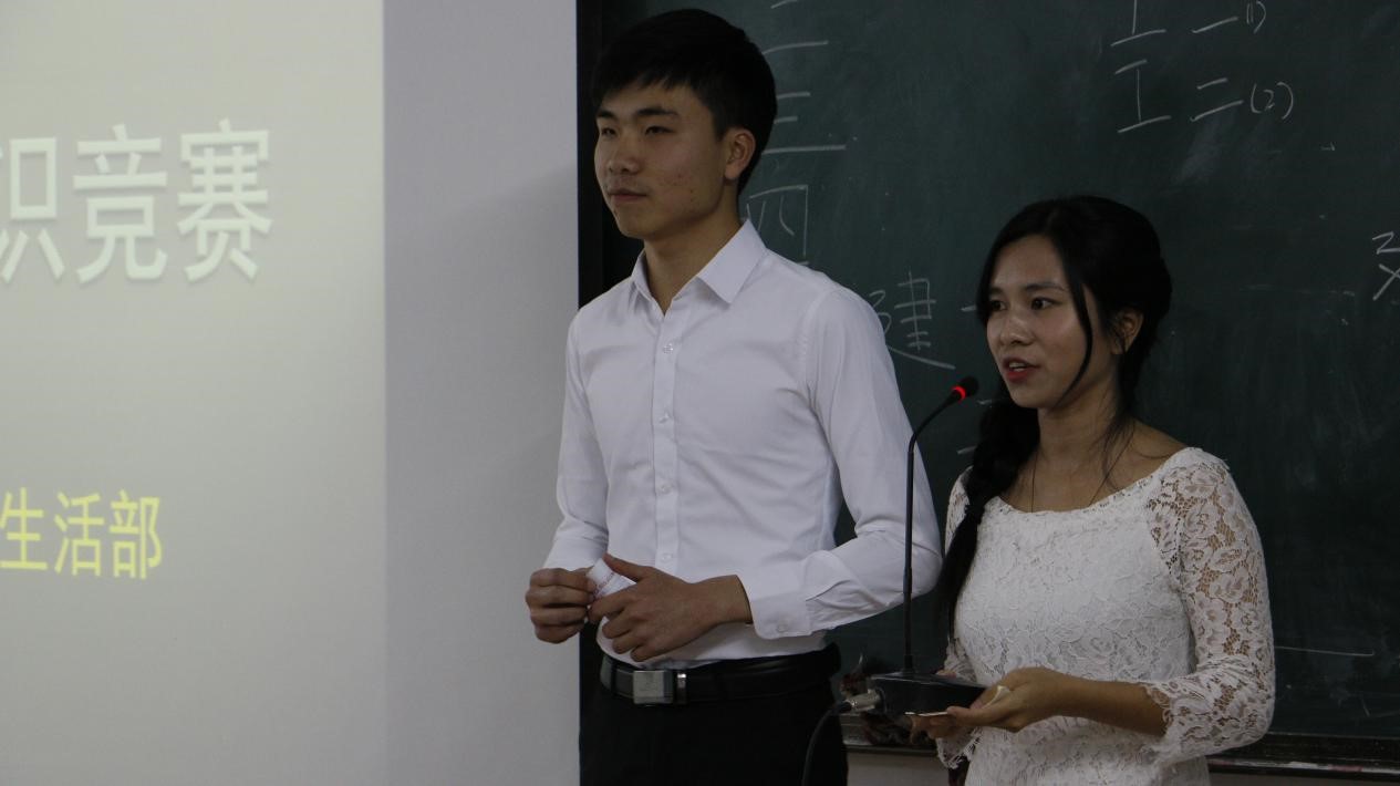 在参赛选手以及受邀嘉宾到场后,生活部的的干事开始上台开始在场的选手讲解生活达人竞赛的规则以及内容。