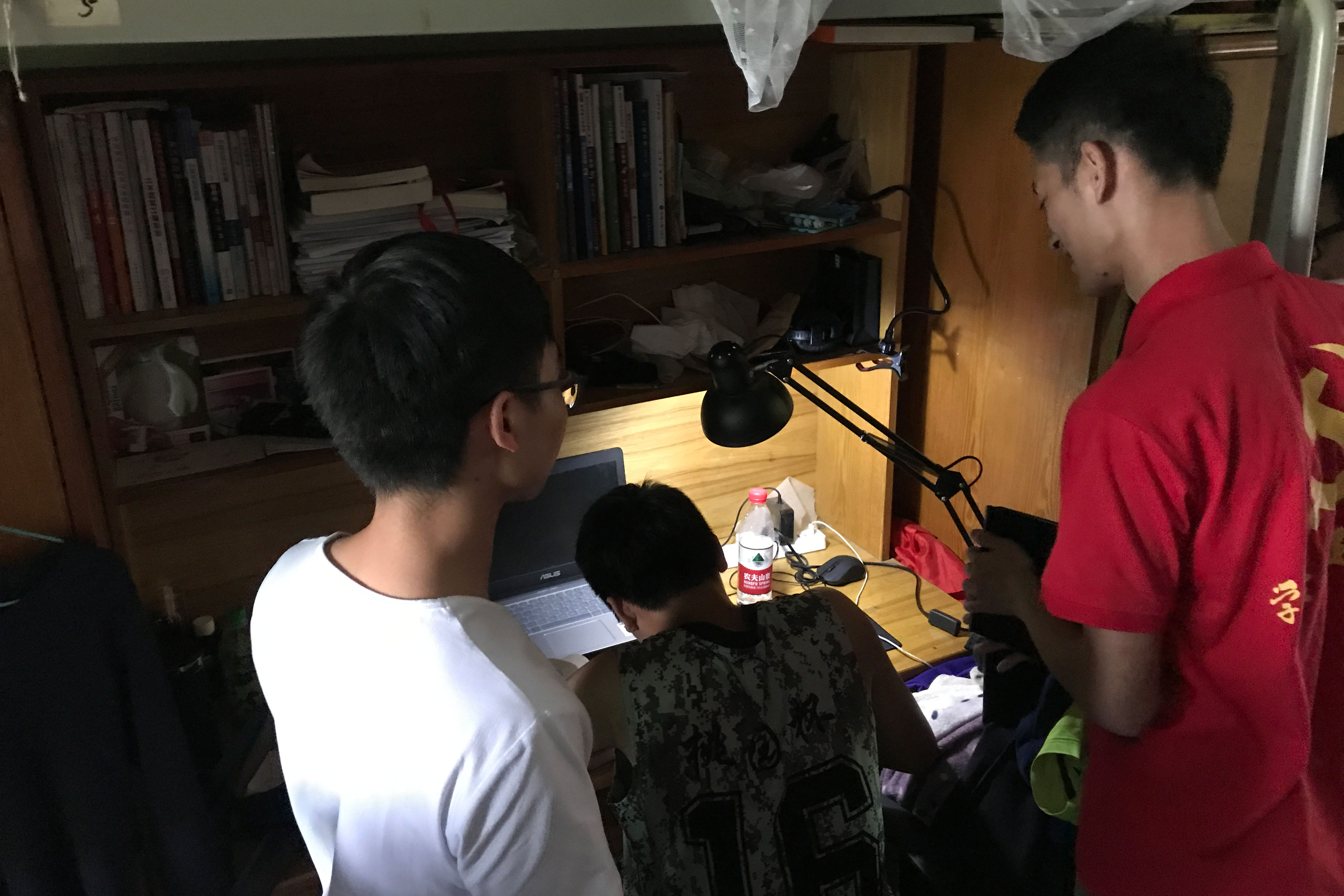 伴随敲门声而来的是一声亲切的问候,干净的宿舍卫生让人感觉清新舒爽,谈话气氛其乐融融。