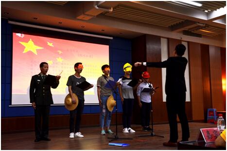 大赛在主持人的主持下拉开帷幕。比赛开始之时,全体起立奏唱国歌。首先,第一轮进行的是歌词接龙环节。由城建声乐队为参赛选手们歌唱题目。选手们聆听红歌并用激昂慷慨的声音唱出革命精神,熏陶着在坐的观众。