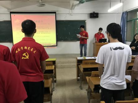 首先,全体党员面向国旗,奏唱国歌,庄严而嘹亮的歌声响彻整个课室。