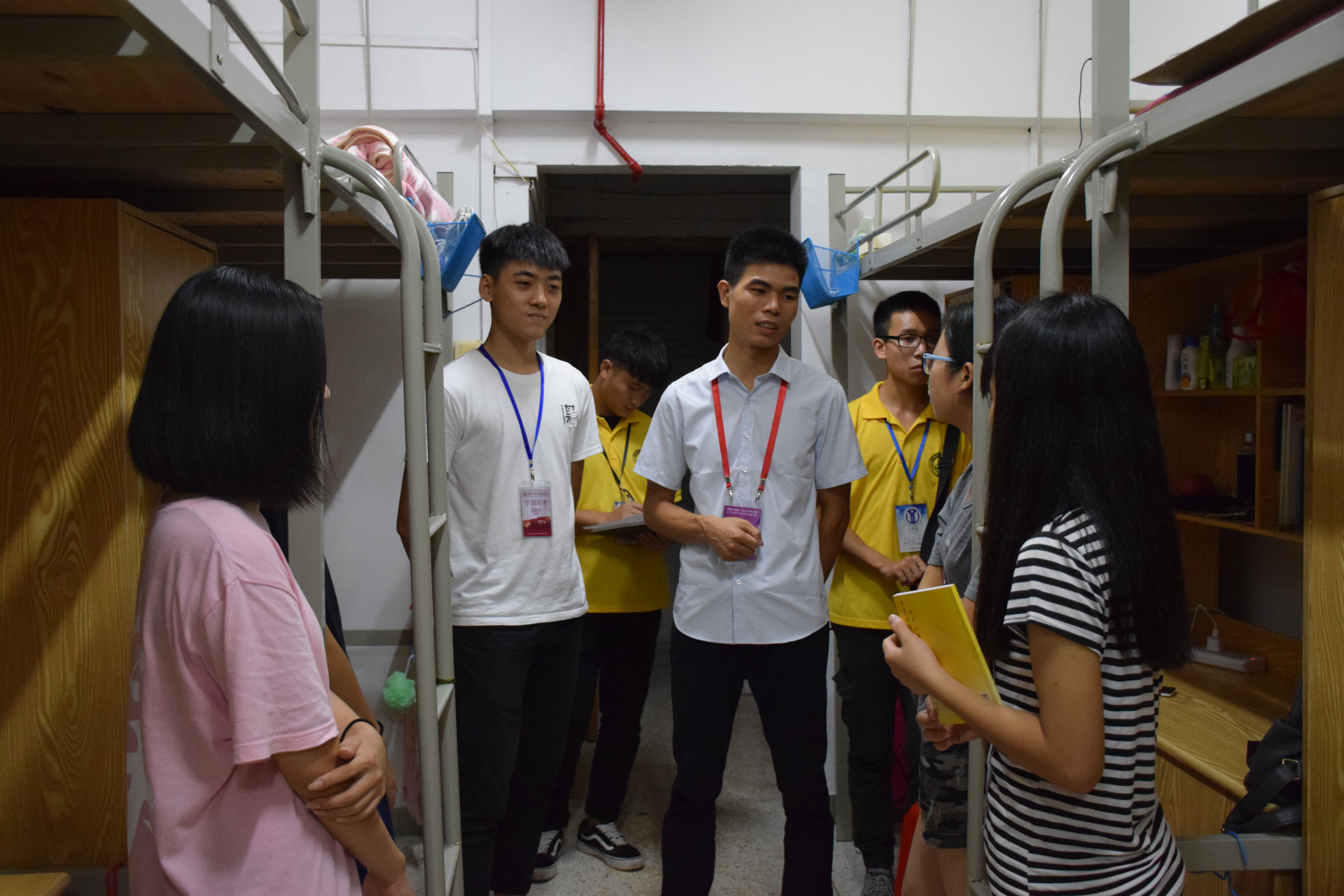 慰问过程中,卢老师和陈炯老师与新生亲切交谈,了解他们的入住情况,给他们提出适当的建议,询问宿舍是否有维修问题,并且亲自为新生解决宿舍问题。