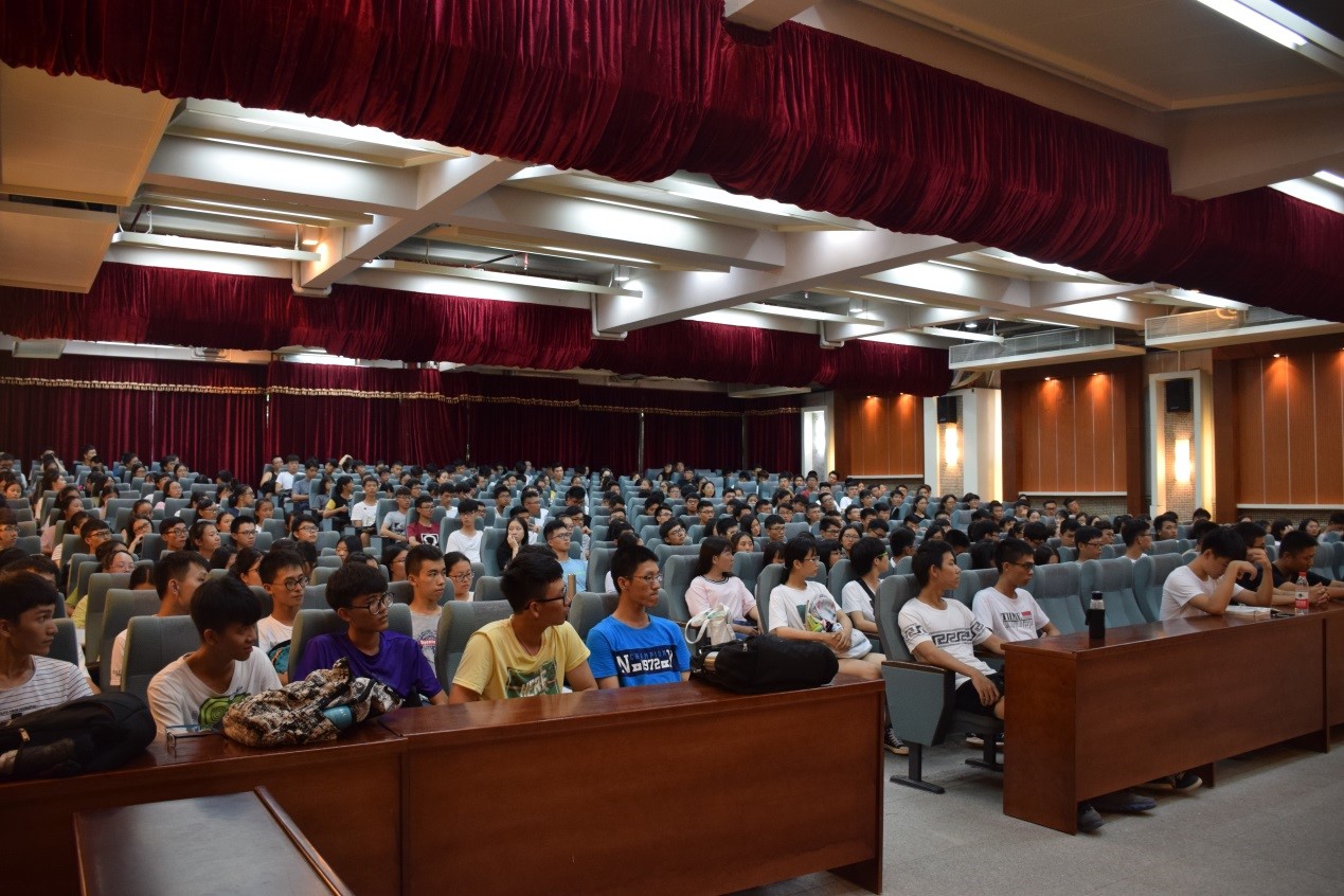 蔡书记首先通过“WHO WHAT”的提问方式,让新生们了解和正确认知自己,并借助自己从事教育工作多年积累的经验和自身丰富的阅历向新生们讲解“如何读大学”,将正确的大学观深深地印在新生的脑海中,为其将来正确的大学之路奠定基础。随后,蔡书记引用华中科技大学李培根教授名言“那个你一天骂它8遍却不许别人骂的地方”解释“母校”的定义,获得在场新生的阵阵掌声。