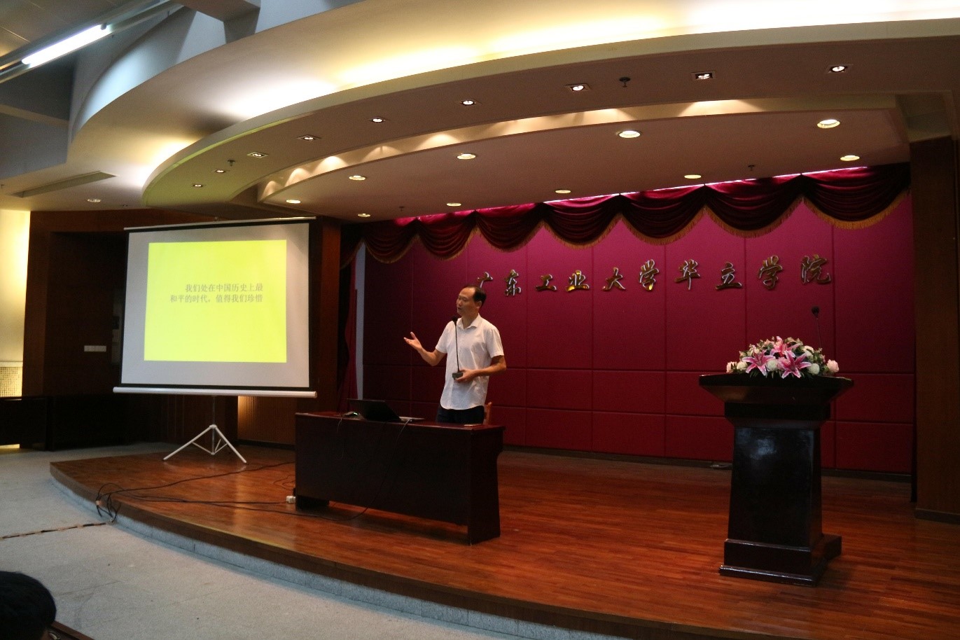 广东工业大学华立学院城建学部于2017年9月21日在学院图书馆二号报告厅展开思政第二课,本次思政课的主题是:把握当下,珍惜时间——与新生谈大学生活和学习,由城建学部常务副部长卢集富给17给排水和土木工程专业的新生开课。