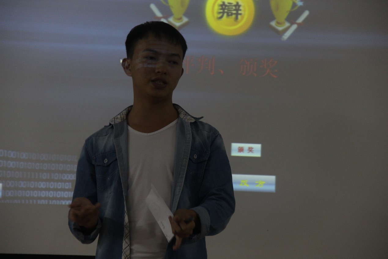在现场,同学们感受到的不仅仅是正反双方激烈的辩论,还有辩手们对己方观点的坚持。辩手们以“友谊第一,比赛第二”的理念为前提,以对方的逻辑漏洞为题展开精彩的辩论。