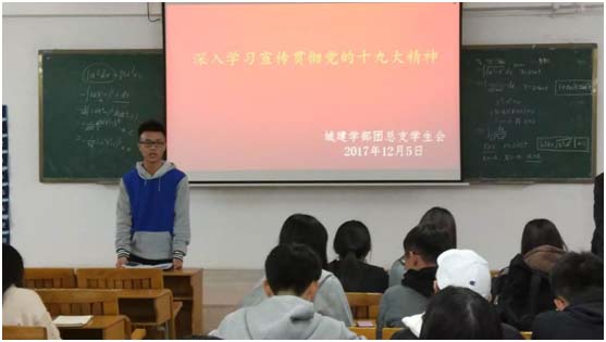 遵照《中共中央关于认真学习宣传贯彻党的十九大精神的决定》部署,落实“学懂、弄通、做实”的要求,广东工业大学华立学院城建学部团总支学生会于2017年12月5日晚上19:30在五号教学楼205教室召开了深入学习宣传贯彻党的十九大精神会议。