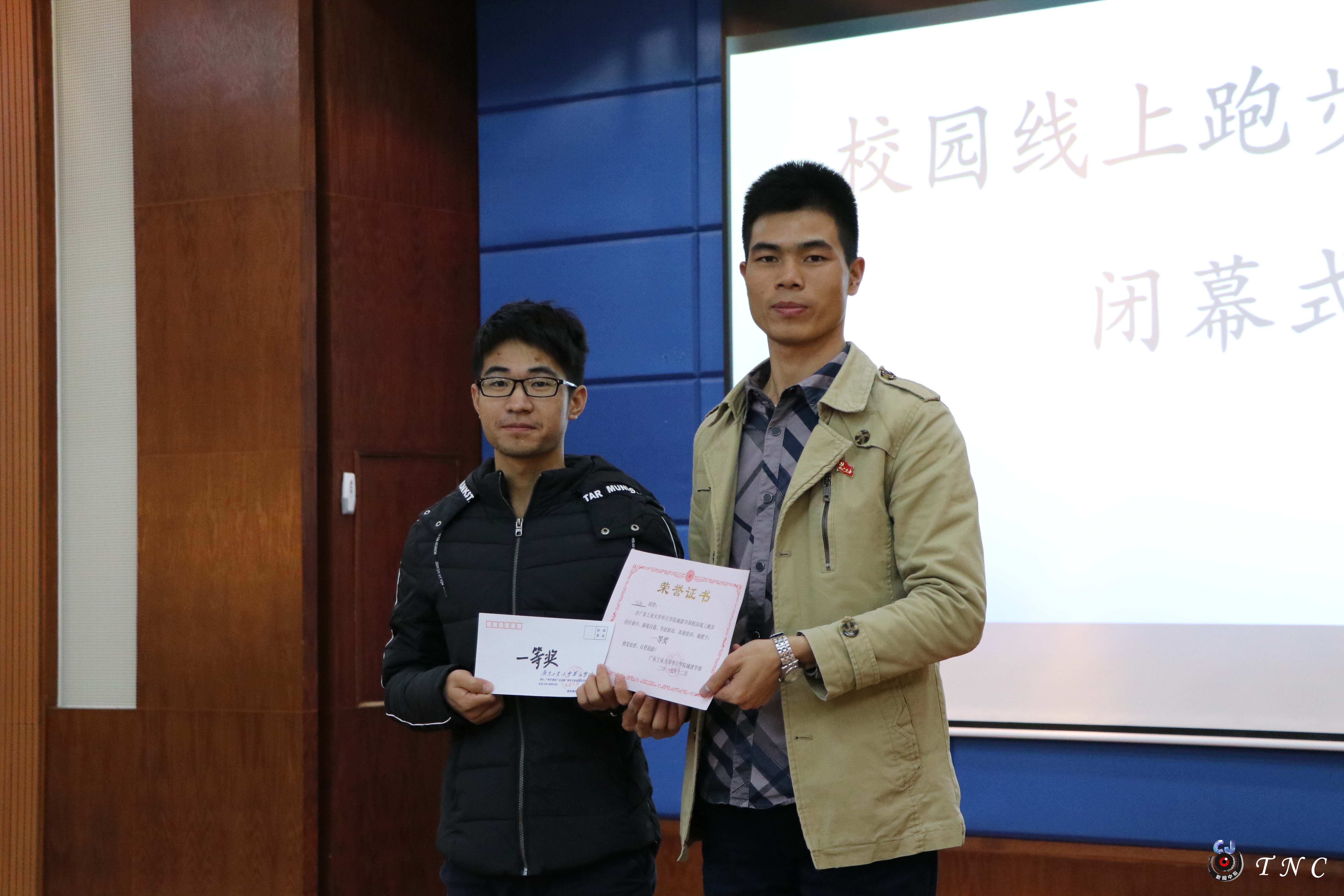 闭幕式第四项,颁奖。由黄国锐师兄为获得突破奖的17造价4班的何晓岚和三等奖的17土木3班的杨越颁奖,由陈炯老师为荣获二等奖的16造价1班的曾楚瑜颁奖,由卢境志书记为荣获一等奖的17土木1班定宝鑫颁奖。获奖者按照秩序依次上台发表获奖感言。跑步是一项最简单的运动,它只需一双舒适的跑鞋,然后迈开双腿奔跑;但跑步也是一项艰难的运动,它让你呼吸困难,腿部肌肉绷紧。吃得苦中苦方为人上人,只有坚持才是唯一的捷径,这也是以上同学获奖的原因。