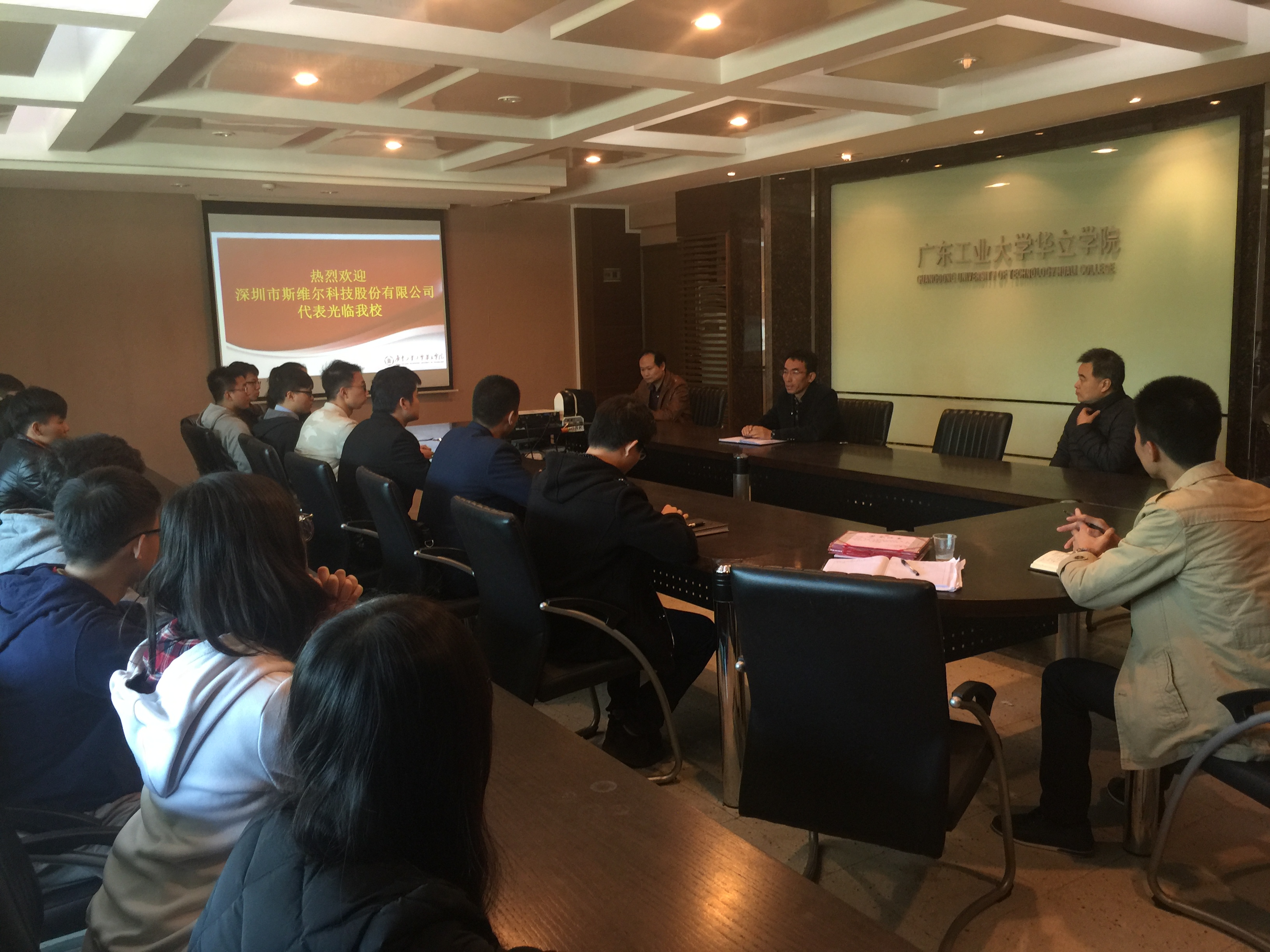 12月22日,深圳市斯维尔科技股份有限公司领导罗经理等人莅临我院洽谈校企合作事宜,校企双方在学院会议室召开会议,学院副院长王学军、学院教务处处长广树建、校外教学管理处处长李斌、城建学部常务副部长卢集富、城建学部党总支书记蔡凯武等人出席了本次会议。会议由校外教学管理处处长李斌主持。