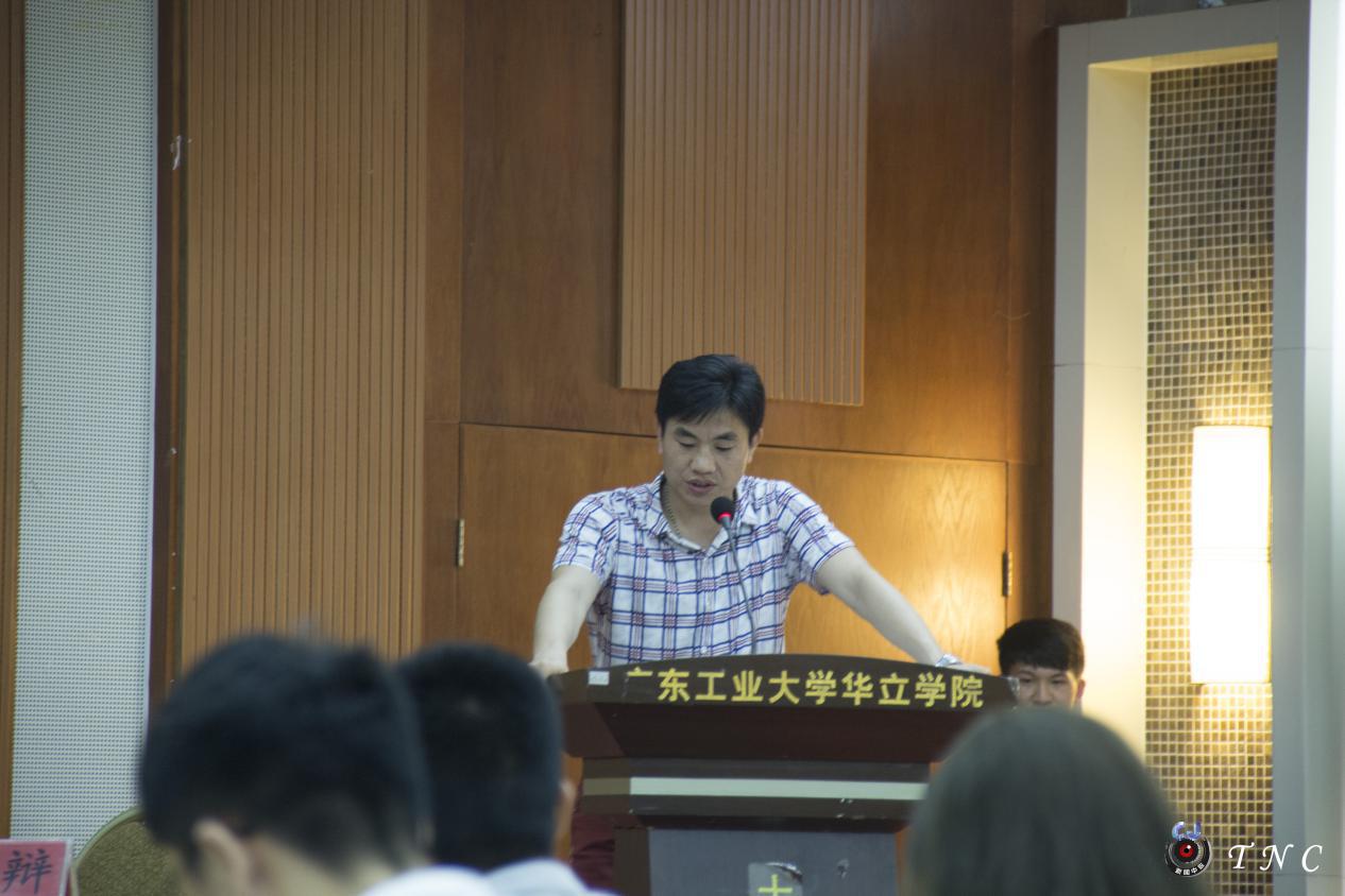 比赛结束,由广东工业大学华立学院城建学部辩论队技术指导于善斌指出双方的优缺点和宣布双方最佳辩手。