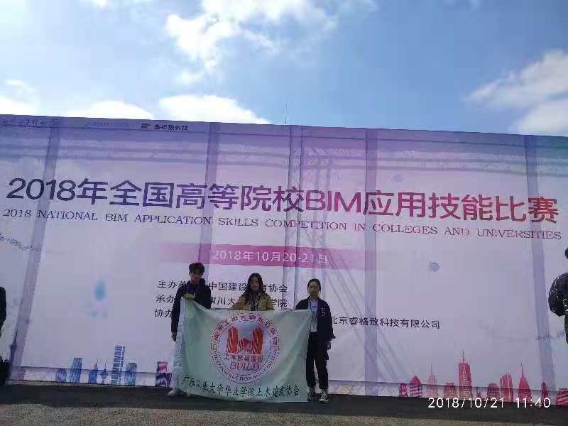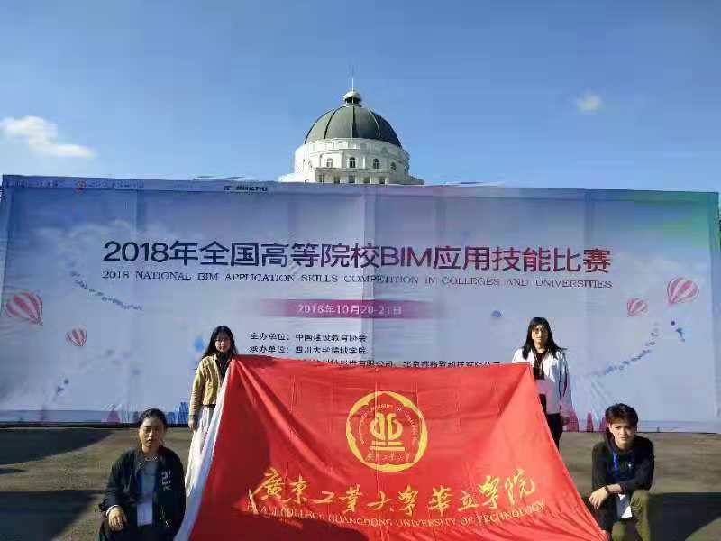 2018年10月18日本校学子温柔、梁翠莹、杨家豪三名同学组队,在指导老师陈静的带领下,代表本校前往四川大学锦城学院参加2018年全国高等院校Bim应用技能比赛。