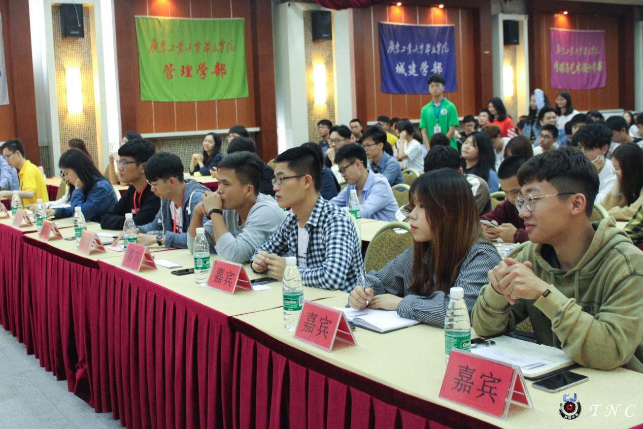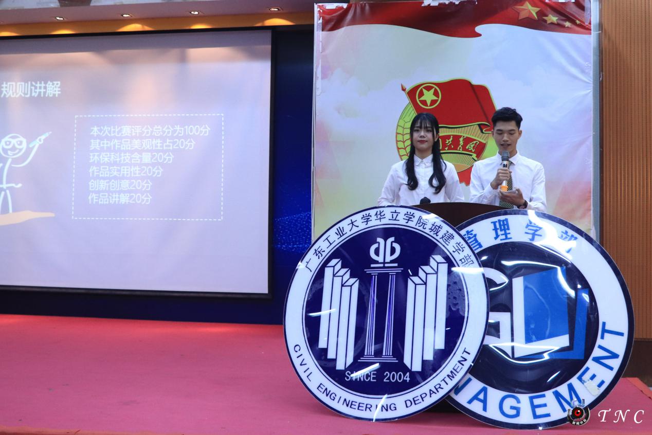 2019年4月15日城建学部与会计学部联合举办的环保设计大赛决赛在广东工业大学华立学院3号报告厅进行决赛。14个小组在这里以演讲介绍小组设计的方式进行比拼。