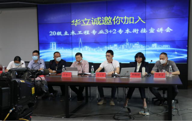 如今,我校和广东工程职业技术学院协同育人试点项目的第一批学生在高职阶段的学习已至半程,为进一步推动专本衔接,加强协同育人合作,使得学生对今后学习目标更明确,对未来发展信心更坚定,4月22日下午,我们两所合作院校一起组织召开了土木工程“3+2”专本衔接线上宣讲会。华立城建学院院长赵海云、副院长卢集富、党总支书记谌裕勇、学校招生办副主任梁培群、土木工程专业负责人林锦眉、工程管理专业负责人陈静和工程造价专业负责人王晓轩及土木工程教研室部分教师列席了会议,广东工程职业技术学院建筑工程学院院长王洪波、副院长赵学问、建筑工程技术专业王军丽主任与教师以及20、21两个专本衔接班级的同学分别在各自的分会场参加了本次交流活动。会议以腾讯视频会议的方式进行,由广东工程职业技术学院赵学问副院长主持。