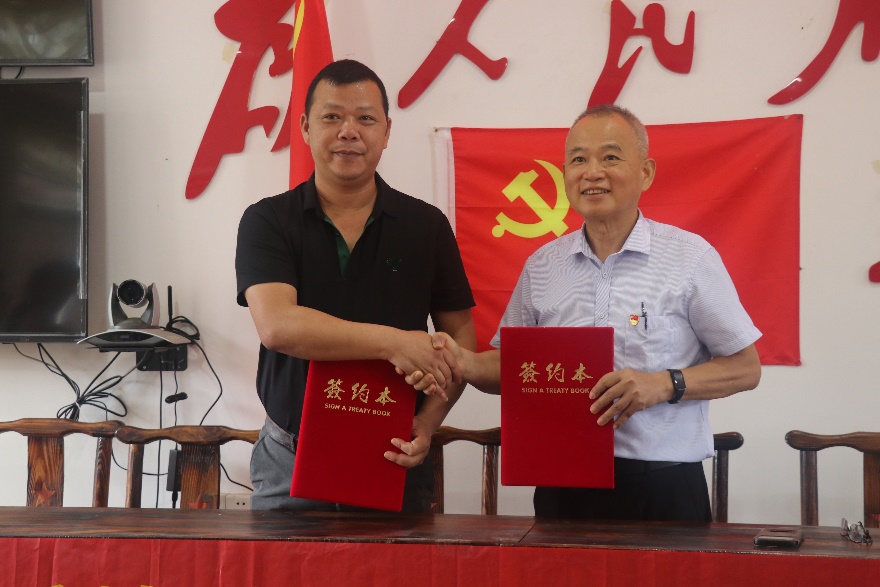 6月7日,校长刘洁生、党委书记李琼生、常务副校长柏育红、副校长蔡敏、乡村振兴特色产业研究院院长李向林、广州市增城区正果镇白面石村王晓志书记、王李营常务副书记、王梓鹏副主任以及机关二支部党员代表、我院师生代表等,前往中共增龙博中心县委旧址举行“百千万工程”乡村振兴特色产业基地签约和揭牌仪式,仪式由常务副校长柏育红主持,并参观调研我院广东青年大学生“百千万工程”突击队行动——“四维荔体”项目产业种植基地。