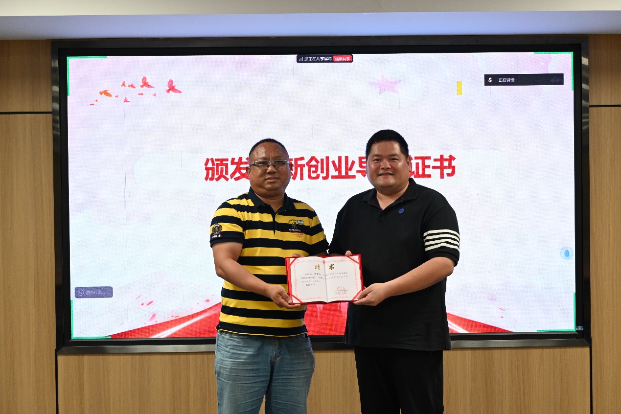 图5:谌裕勇书记向郑辉华博士颁发创新创业导师证书