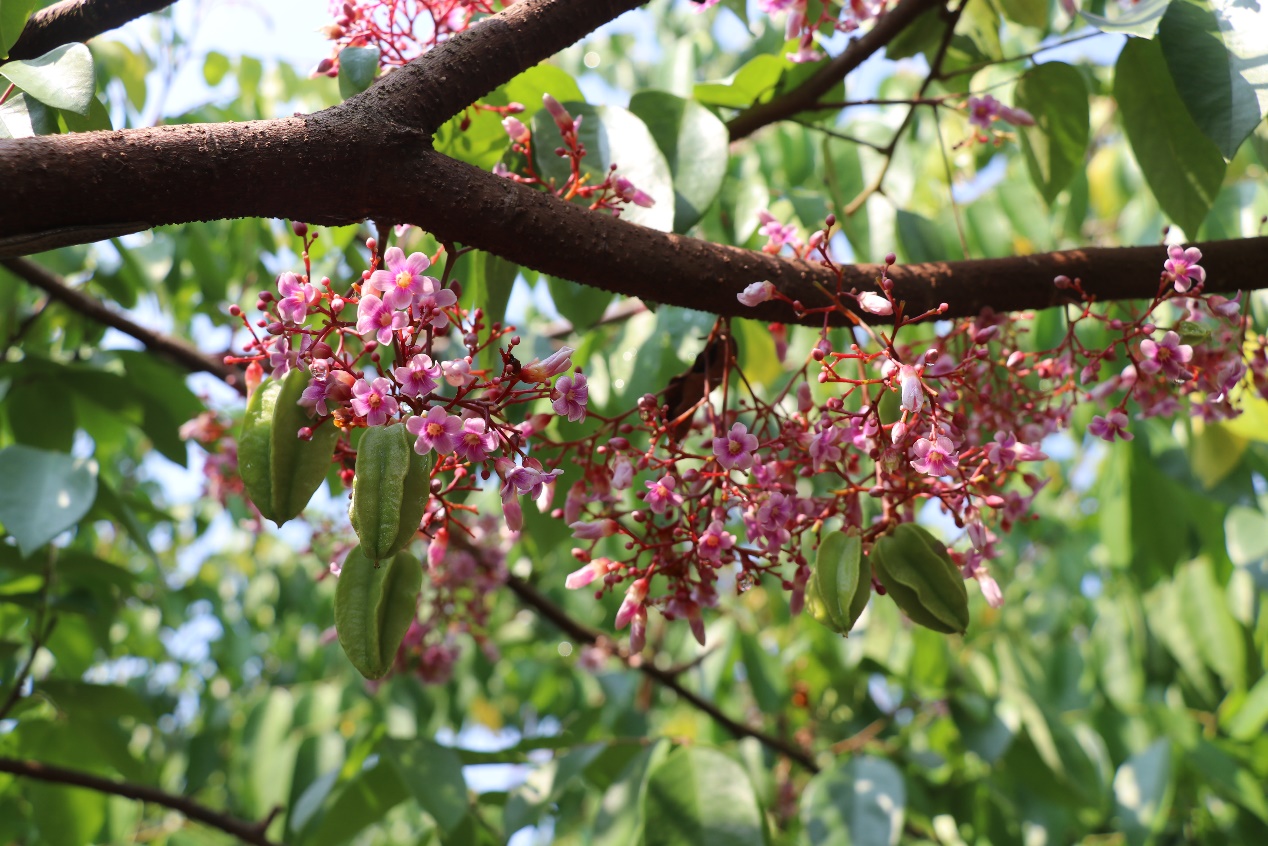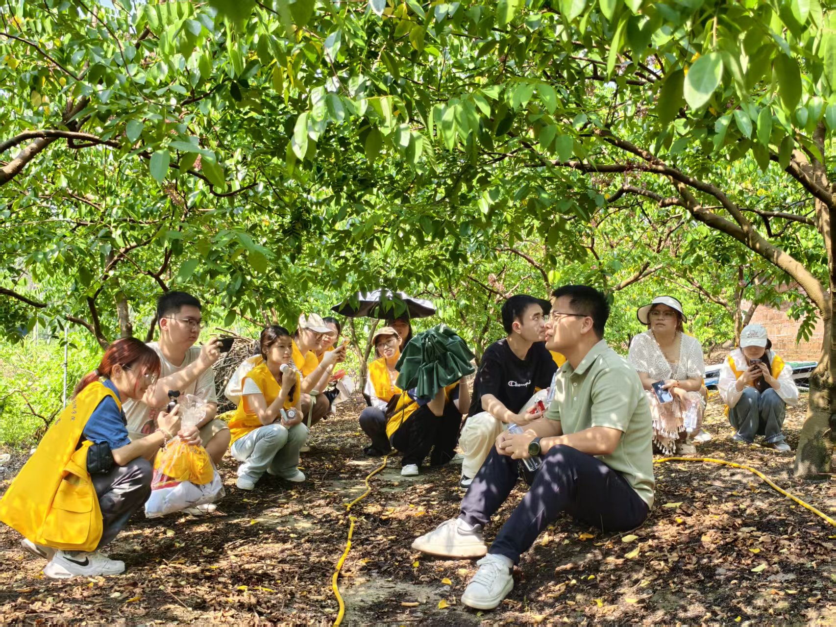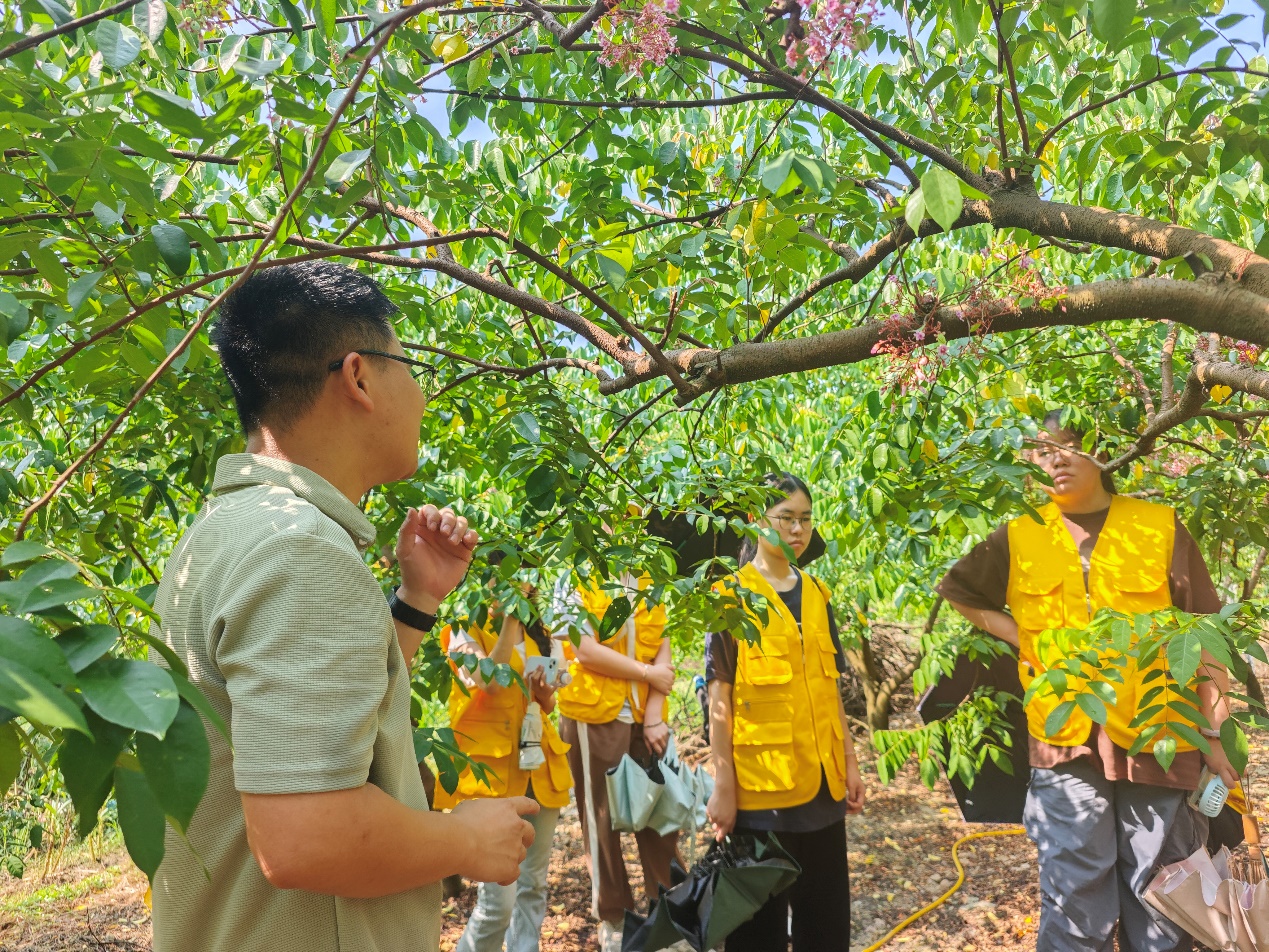 实践队的首站是麻榨镇颇具规模的杨桃园。一进入杨桃园,郁郁葱葱的杨桃树便映入眼帘,树上挂满了形态饱满、色泽诱人的杨桃,清新的果香扑面而来,让队员们瞬间感受到了丰收的喜悦。