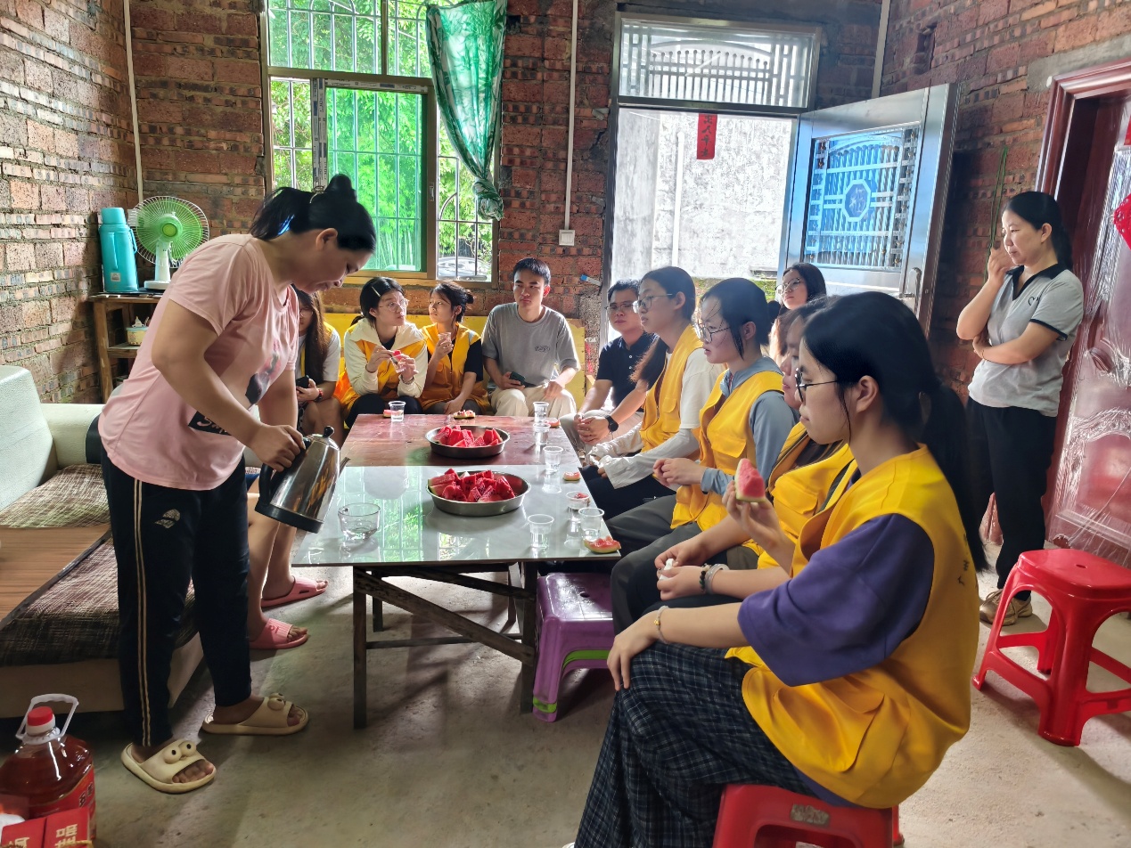 2025年7月8日,广州华立学院城建与资源勘探学院团总支学生会、十宝先锋队、篱下拾光队、艺绘新农4支百千万工程突击队前往惠州市龙门县麻榨镇下龙村开展走访慰问活动。在村干部带领下,队员们逐一走访老党员、特殊儿童和困难家庭,送上食用油、盐、纸巾、牛奶等生活物资,传递广州华立学院师生的关怀。