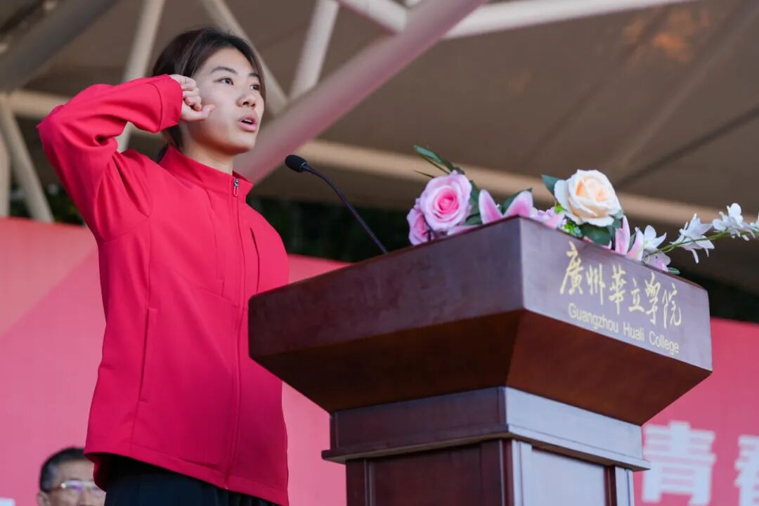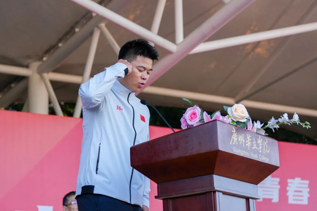 运动员代表林睿彤同学与裁判员代表陈孟琦老师先后登台宣誓。林睿彤同学承诺将严格遵守竞赛规则,尊重对手、尊重裁判,全力以赴展现竞技风采;陈孟琦老师表示将恪守公平、公正、公开原则,严谨执裁、恪尽职守,保障赛事顺利进行。