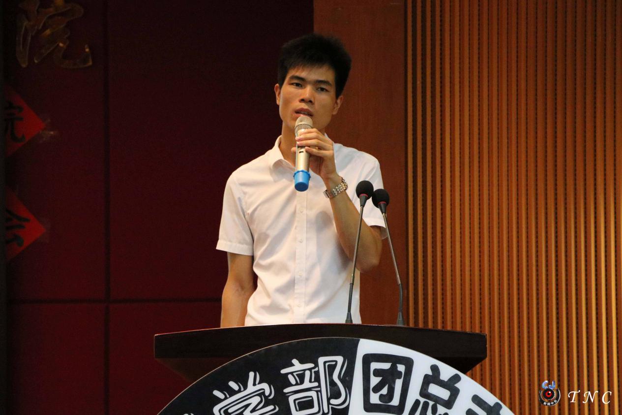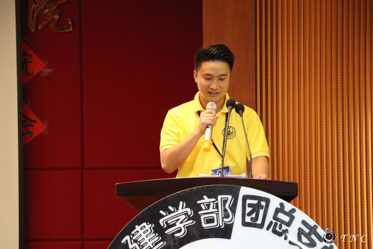会议第三项:卢境志老师上台发表讲话。首先他先向15届学生会的各位成员表示衷心的感谢,感谢他们这一年来对学生会的付出与贡献。接着他对本年学生会的活动成果表示肯定和赞扬。他表示:本学年城建学生会表现优秀积极,举办的各个活动的开展得井然有序,参与的各项比赛均取得优异成绩。同时他也提出:城建学院学生会也存在一定的不足之处,希望来年继续改进。