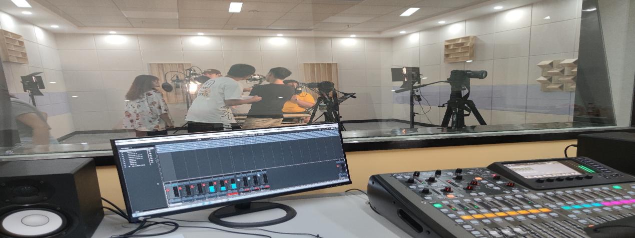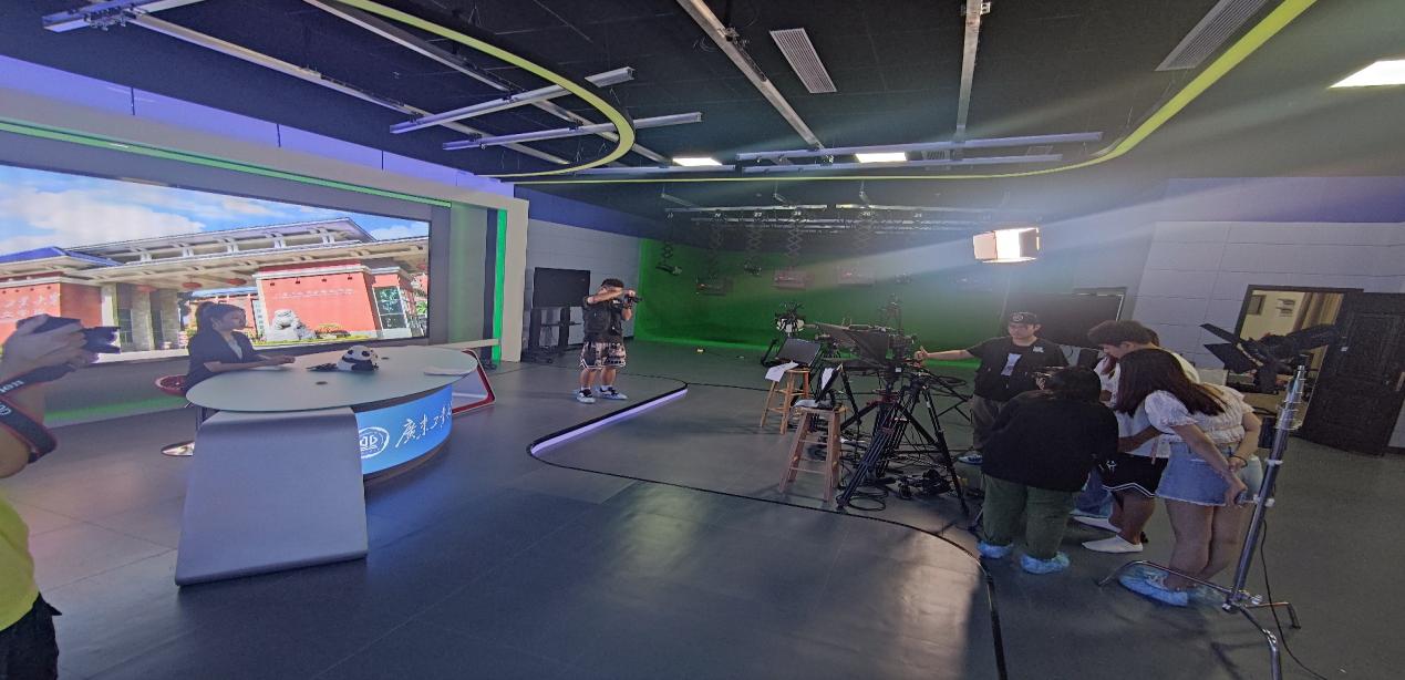 “全媒体实验中心”实验室群位于华立学院8号实验楼9层,占地1500㎡,于2021年3月建成并正式投入使用。本实验室群由 “融媒体制作中心”、“数字影像编辑室”、 “录音直播实验室”、“虚拟演播厅”、“摄影摄像工作坊”等专业实验室构成,是广东省内首家具备“媒介融合”生产流程样式的实验教学的实验群,其设施条件位居全广东省高校第一梯队该实验群也是广东省实验教学示范中心。