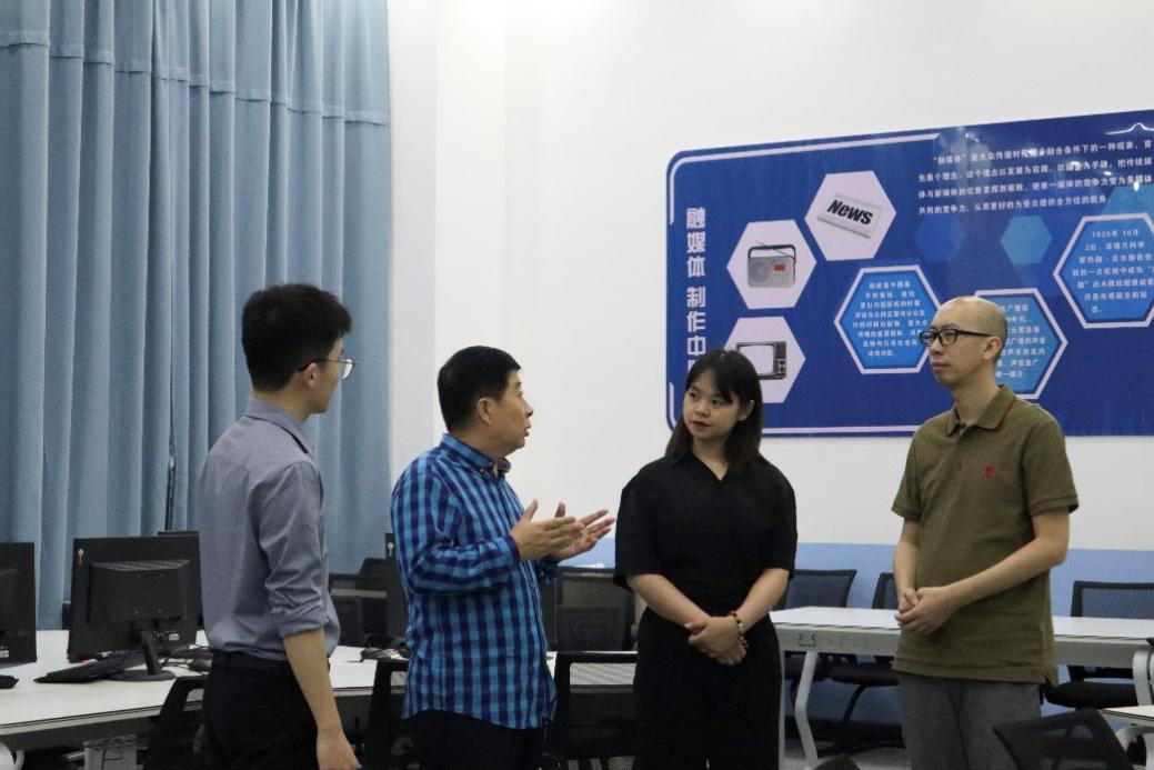 在参观过程中,戴剑平院长向专家们介绍了我院的专业分类、学生人数等基本情况,并着重介绍了我院全媒体实验中心“教学主体化、生产类同化、培训实用化、功能综合化”的专业实践的教学理念。戴院长表示,希望借助校企合作,促进我院各类专业硬件和软件水平的共同发展,突出融媒体中心之“融”。