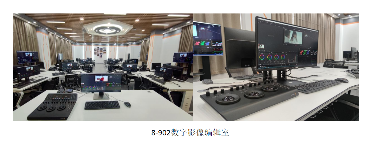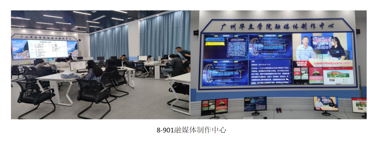当下,中心已全面完成实验中心的新建与全新设计,新建有“融媒体制作中心”、“数字影像编辑室”、“虚拟演播厅”、“录音直播实验室”、“动画与视觉综合实验室”、“与传媒大师同行工作室”“与艺术大师同行工作室”,并将原旧改实验室“摄影摄像工作坊”升级改造后融入其中。按实验室群建设专门的设备耗材储存室与网络中枢机房共2间,是广东省内首家具备“媒介融合”生产流程样式的实验教学平台,在省内处于领先水平,于2020年落成投入实验教学使用,期间完成2次增补升级,目前运转良好。