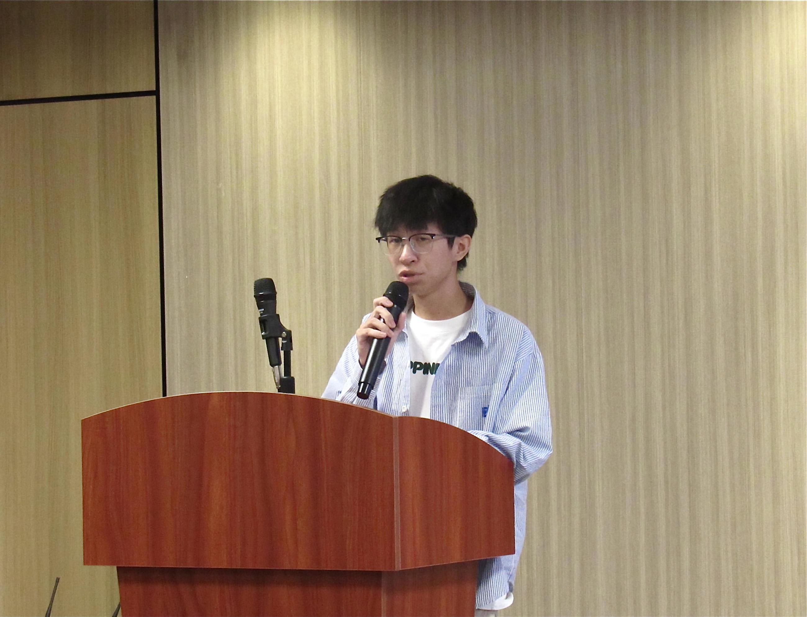紧接着,刘景阳同学为大家阐释了什么是攀登计划,以及它与大挑比赛之间的区别。他向大家分享了自己丰富的比赛经验与心得。同时,他提出了参赛过程中三个方面的重点:其一,选题至关重要。一定要明晰自己的方向,确定好选题的大小,选题过程中可以通过浏览学术网站来提供灵感,选题的新颖性与创新性同样也是关键所在;其二,要提升自我能力。可以向有比赛经验的学长学姐请教,也可以聆听相关讲座来充实自己的知识领域;其三,选人要精准。选择与自身前进方向相同或能够彼此互补的组员携手共进,选择自己熟悉的或对研究有帮助的老师虚心求教,此二者皆为上佳之选。最后,他表示同学们在这些方面付出的努力,都会化作生命历程中重要的基石。并鼓励同学们鼓起勇气,大胆尝试,在不断的挑战中超越自我。