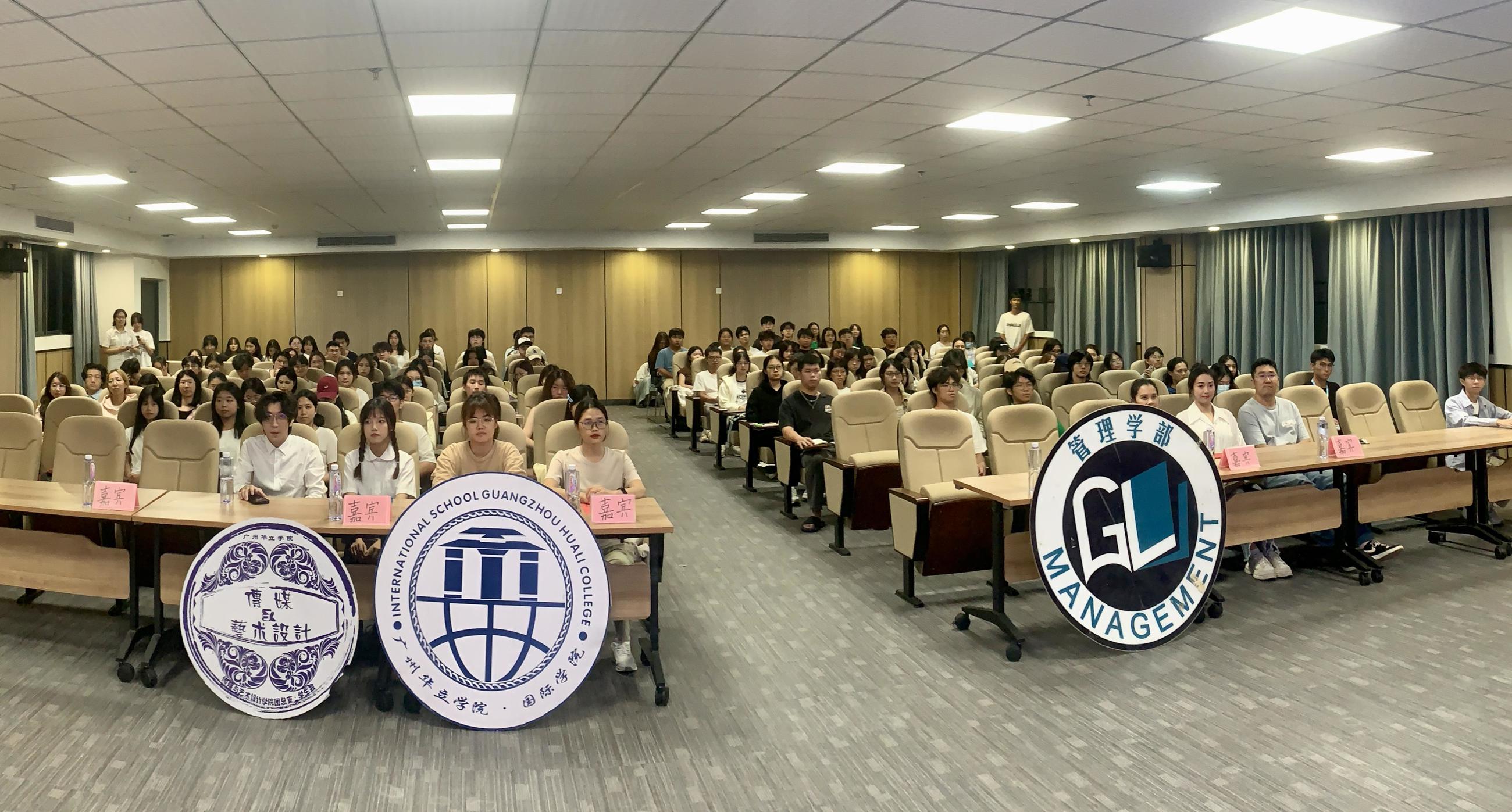 出席本次宣讲会的嘉宾有:广州市团校客座讲师、华立创新创业园管理部部长黎梅飞老师;国际学院团总支书记杜逸男老师;传艺学院辅导员罗绮锜老师;管理学院团总支书记张佳琪老师;管理学院罗楚怡老师;以及校学术部成员和各学院主席团成员、干部。