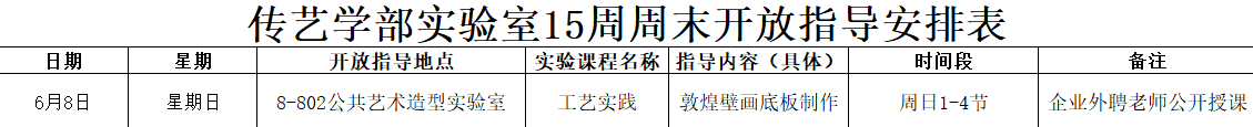 为了更好地满足广大学生利用课余时间进行专业学习和提高,丰富自己的创新实践能力的需要,传艺学部综合实验中心相关实验室将在课余时间对学生进行开放。现将2024-2025学年第二学期第15周周日开放安排公示如下: