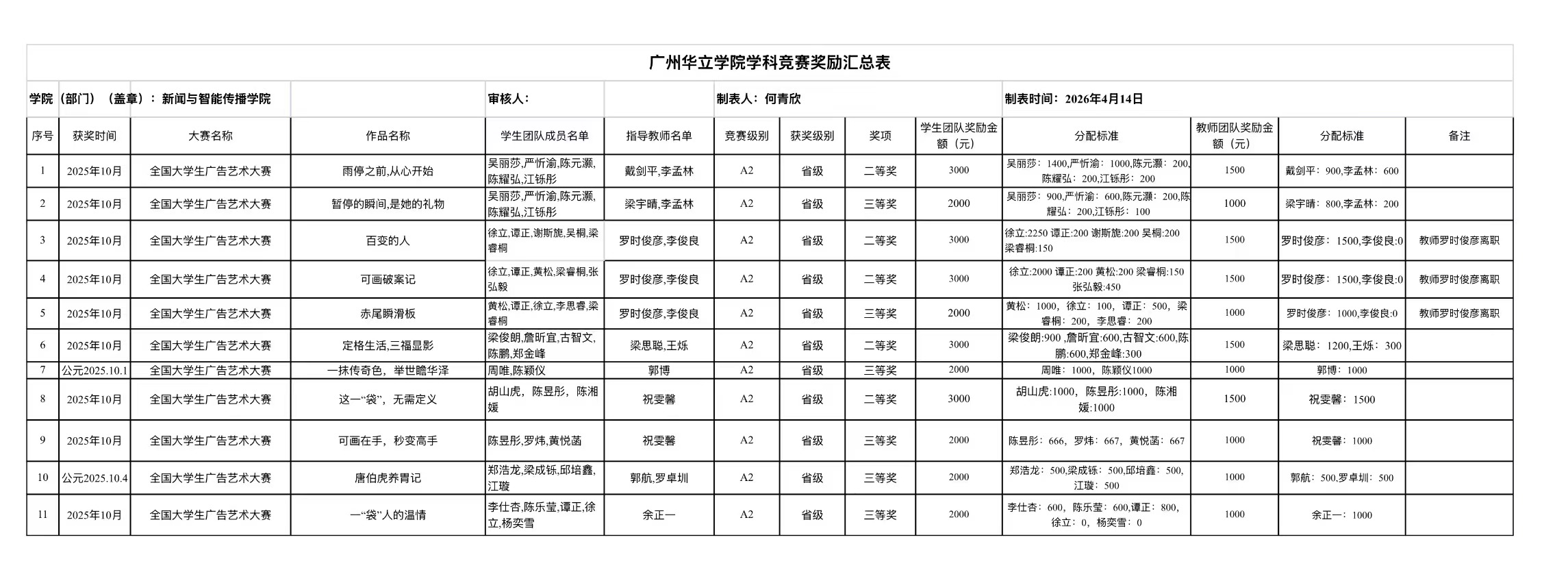 新传学院学科竞赛奖励金学院审核结果公示