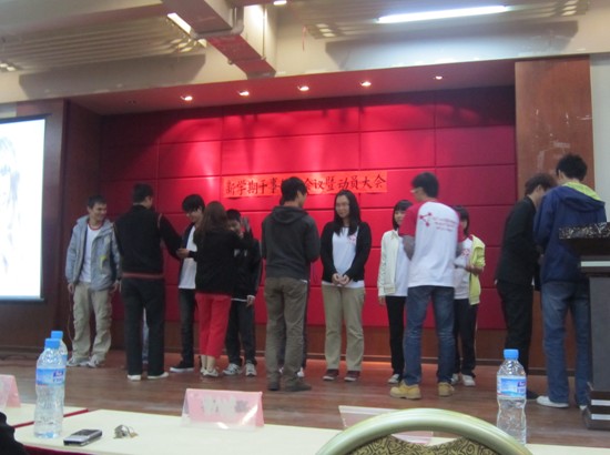 观看了PPT之后就到了激动人心的时候了——颁发干事证,每个部门的干事依次轮流上台领取干事证。每个干事在拿到干事证时内心都露出了一丝微笑,因为他们得到了肯定,他们的付出得到了收获。