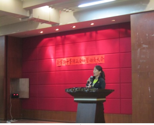 会议开始后就由刘书记发表讲话,她强调每个学生会和艺术团的孩子们在举办各项活动和完成任务时都要工作与学习并重,不可以因为工作而耽误了功课。刘书记讲话完毕后就由张海燕老师发表讲话,她很欣慰每一个学生都能坚持在为学生,为学校服务,她的话给我们一个人很大的鼓励,有了老师们的肯定,我相信每一个干事或者部长都会把所有的疲惫忘记。
