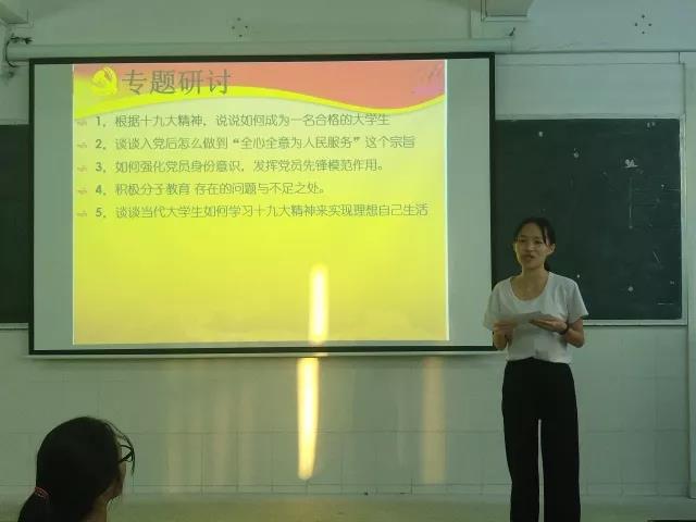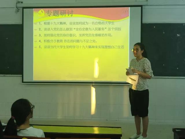 随后,发展对象进行了专题研讨,并把人员分成了三组,经过组员的台下研讨后,每组都派了一名组员就选择的专题进行总结。