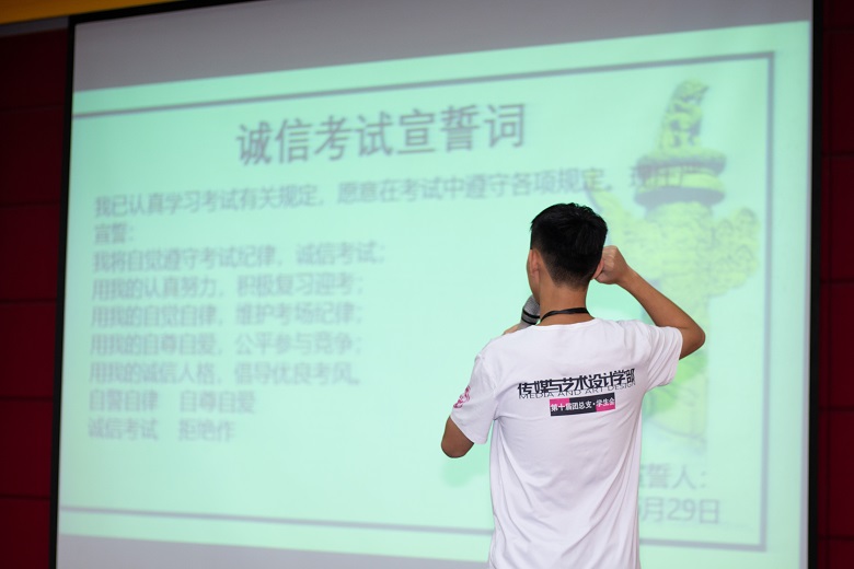 随后,全体同学在秘书长卢知航的带领下进行诚信考试的宣誓和签名。