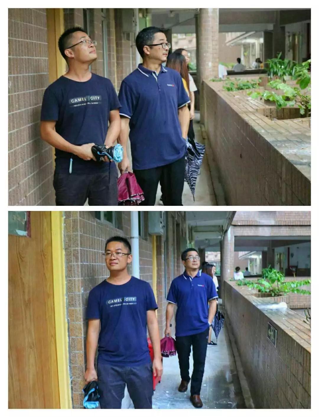 学部部长和党总支书记在走廊查看了解情况