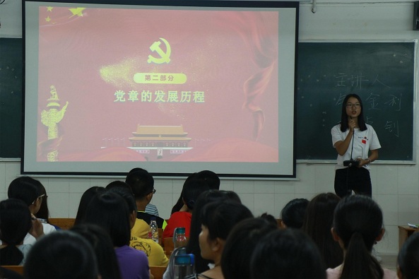 继党章第一讲、二讲顺利开讲后,2018年9月19日19:00,党务工作者再次动员党员们在1号教学楼6楼开展党章第三讲。