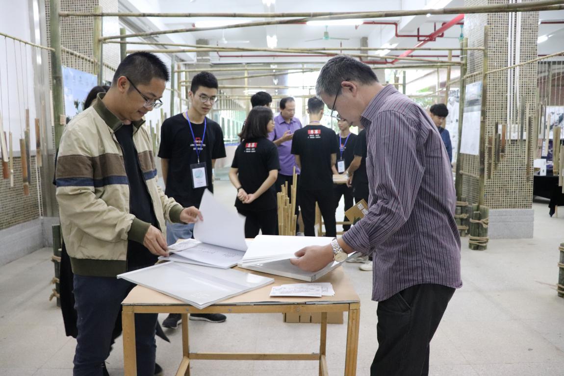 在设计展中,嘉宾们参观了设计展中的作品,专筑工作室指导老师林淑萍老师为嘉宾讲解本次展览的策展过程和介绍展出的作品。