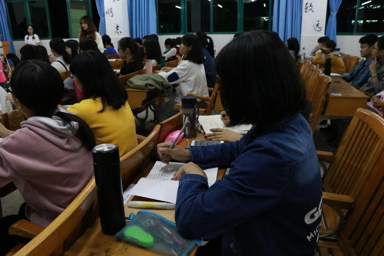 党课即将接近尾声,党员以及入党积极分子为了让学生们能够顺利通过党课考试,广东工业大学华立学院传媒与艺术设计学部于2018年11月1日晚在一号教学楼六楼进行党课第三讲,党员肖明浩、周倩怡以及入党积极分子黄世杰等同志向学生们进行授课。