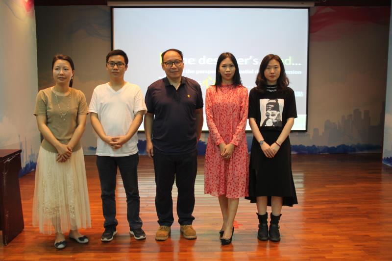 演讲会的开端,由主持人介绍来自我校的各位嘉宾,随后传艺学院牛丽红院长上台致辞。