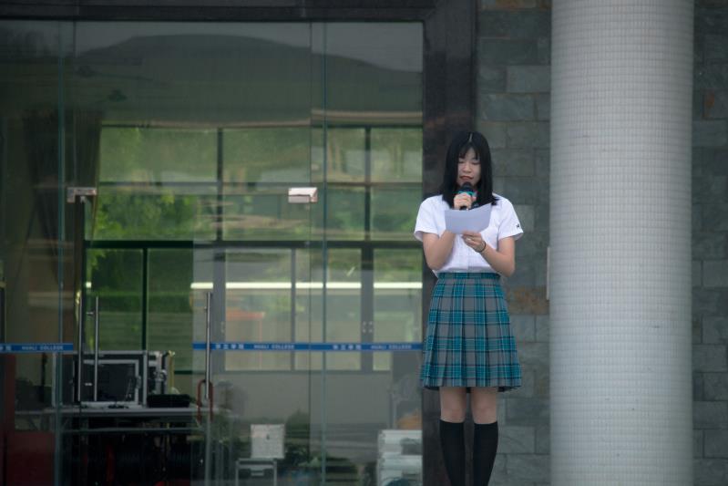 在这个日丽风清的早晨,首先,由纪检工作人员带领同学们有序入场,主持人字正腔圆、铿锵有力的声音传进每个人的心中,感受五四运动这一段激情昂扬的历史,体会有一种不妥协的爱国精神叫五四精神。