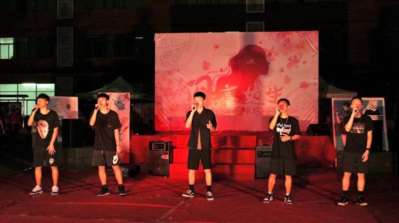 首先,由声乐队带来表演《一起摇摆》劲爆开场。男生们带来一首小虎队的《青苹果乐园》,轻快的歌声、挥舞的双手、炫彩的光线,让现场的大家都不自觉地跟着歌声摇摆律动。三位女生带来充满青春活力的《superstar》,S.H.E可以说是极具代表性的女子组合,很好地切合了本次比赛的主题。声乐队为本次比赛开了一个完美的头。