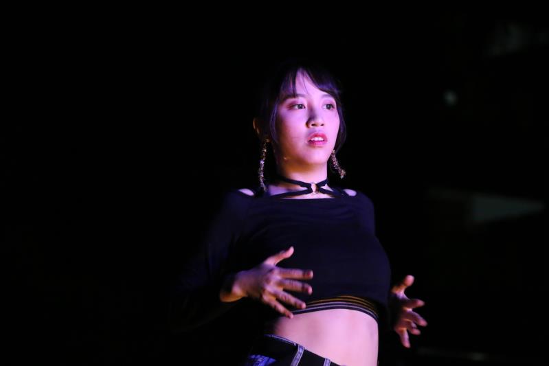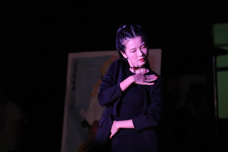 高挑纤瘦的身影,风格干练的着装。是18新闻4班的洪丹妮同学带来舞蹈《gashina》,热辣曼妙的舞姿、柔中带刚的动作、切合舞蹈的表情,这位选手是在享受跳舞,享受舞台,她沉浸在自己的舞蹈中,忘记了紧张,丢掉了害怕,展现了一个自信、独立的女性形象。