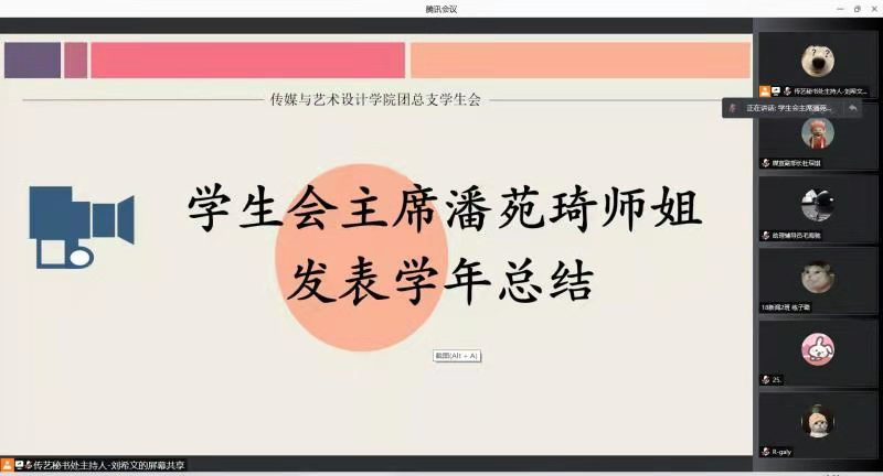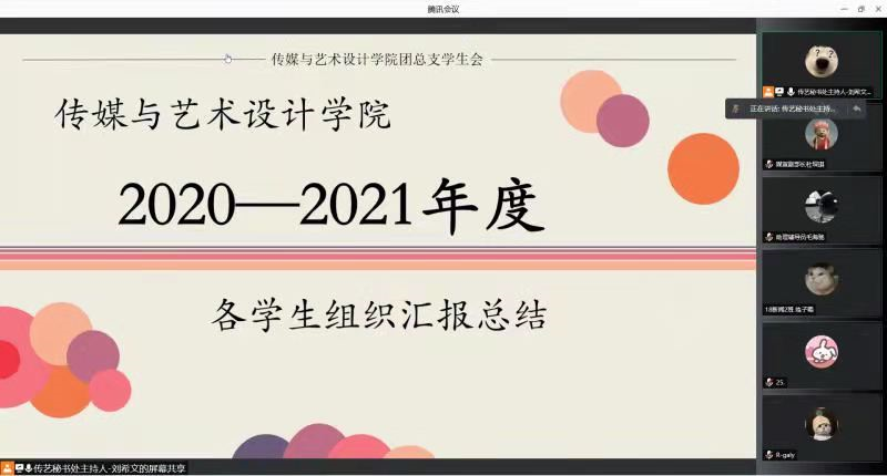随后是传媒与艺术设计学院2020—2021年度各学生组织汇报总结。