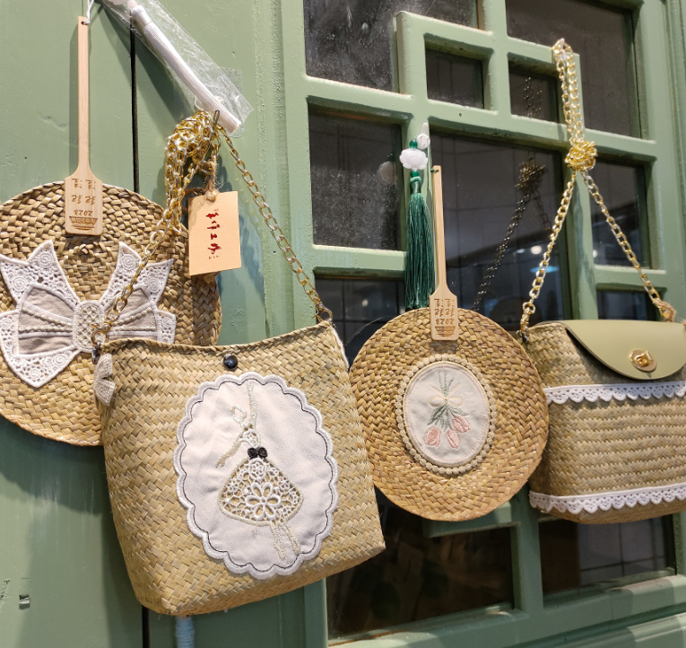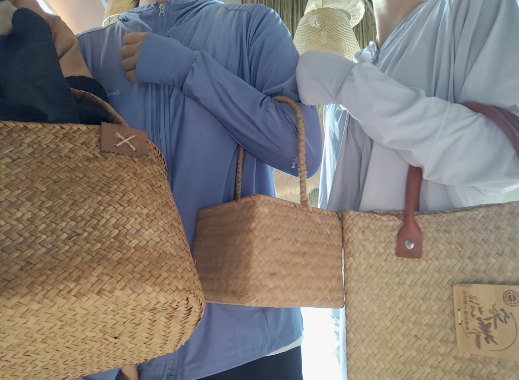 在这里,我们还看到了蒲草工艺品结合刺绣、蕾丝、珍珠等元素制造而成的精美工艺品。这些工艺品不仅具有实用性,还兼具了艺术价值和收藏价值。队员们纷纷感叹其所蕴含的美观性和独特魅力,也对当地的传统文化和手工艺人的精湛技艺表示敬意。