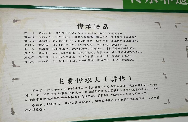 从李长俊老板的介绍中得知,其实目前在做红莲藕粉的人并不多,而华宇葛业公司是靠着一代代人把这项非遗手艺传承下来的。李长俊老板介绍到整个藕粉制作的流程包括采摘,只需四个小时。生产藕粉的时间是每年的12月至4月,所以我们感到可惜没能把这一部分记录下来。大部分的藕粉都是通过手工制作的,但这样的后果是生产效率较慢,所以还是会有部分用机器生产,当然,是否手工生产,包装会有表明。